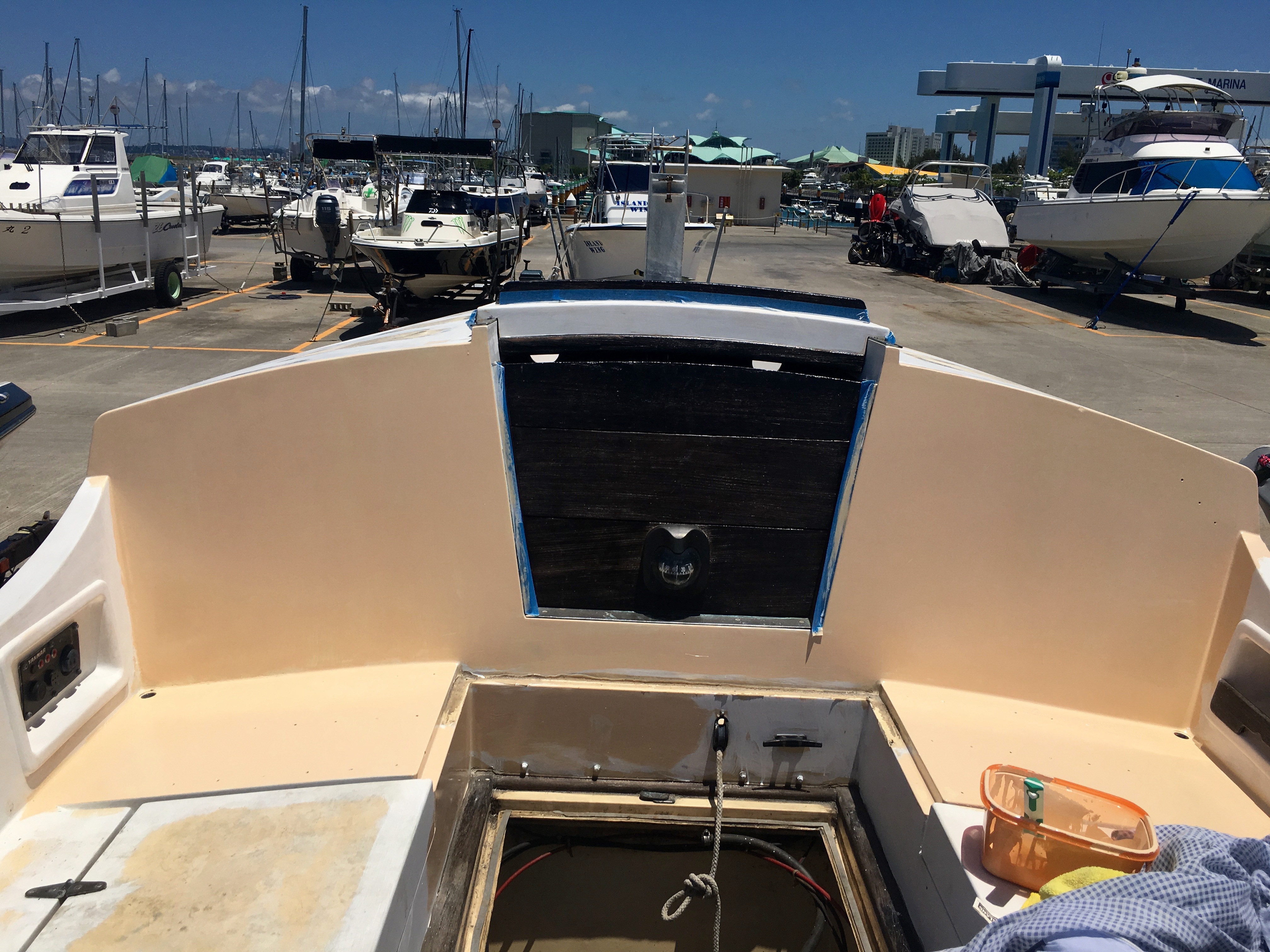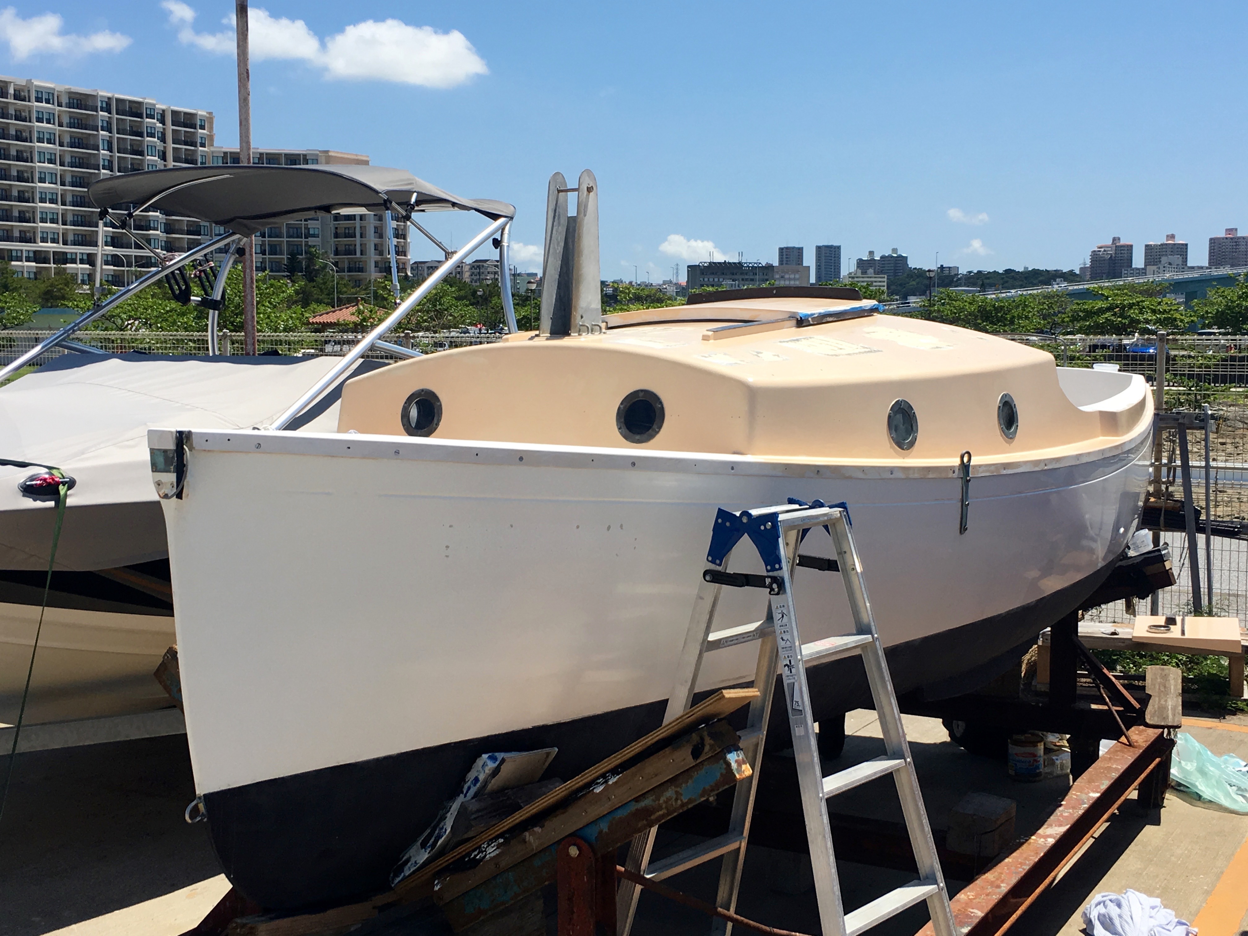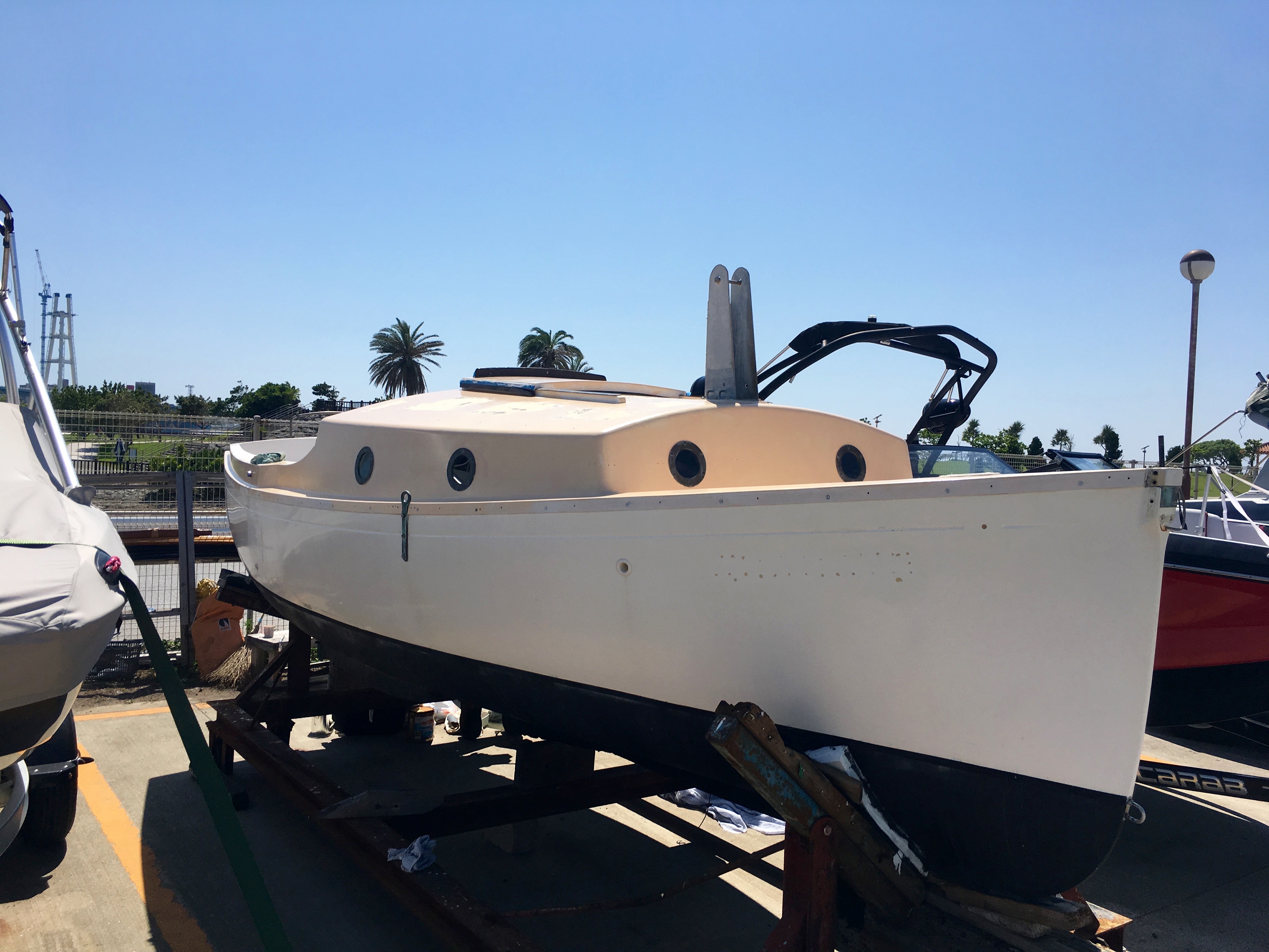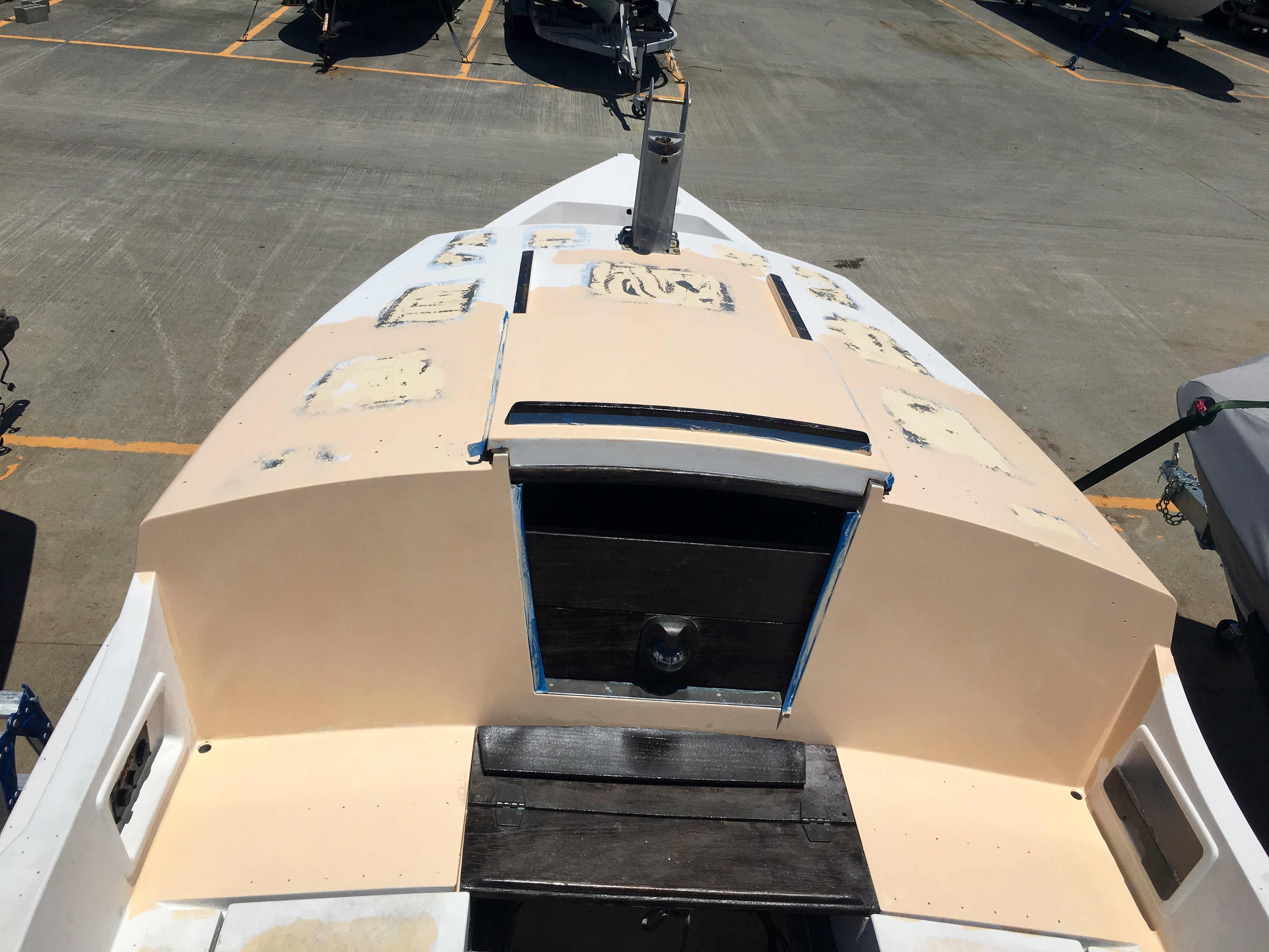 The biggest unknown, or punch in the mouth if you wish, is the center plate. I need to get the boat onto an even higher trailer to refine raising and lowering of the center plate. Height equals instability, trying to clamber around with paint pots and my huge bulk when she is precariously perched, augurs tragedy. Health and safety demand that all painting is done before I try to get her onto a higher platform.