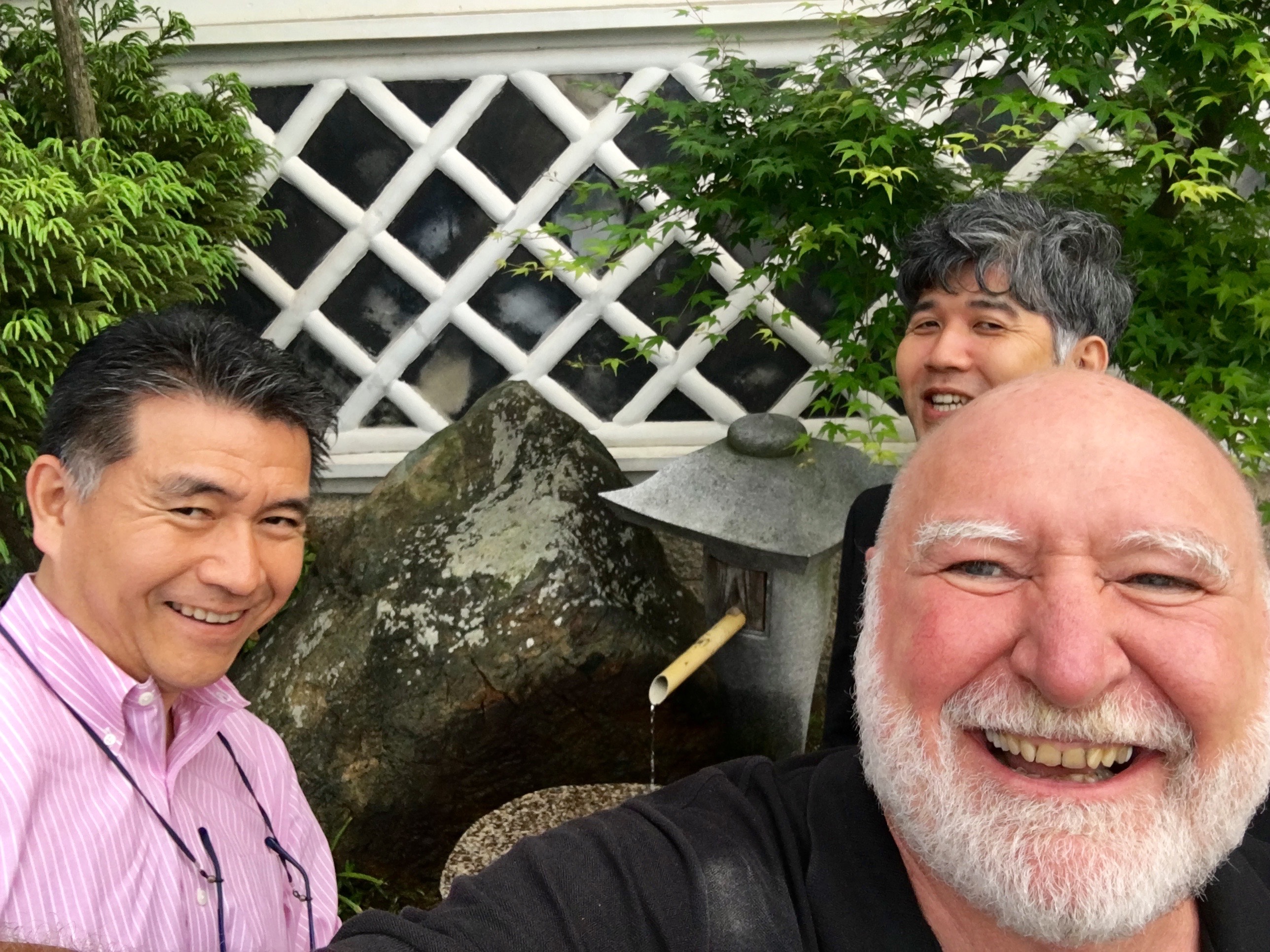 Nori san, Isobe san and I stand before one of the many spring of pure,pure water that supply the breweries.