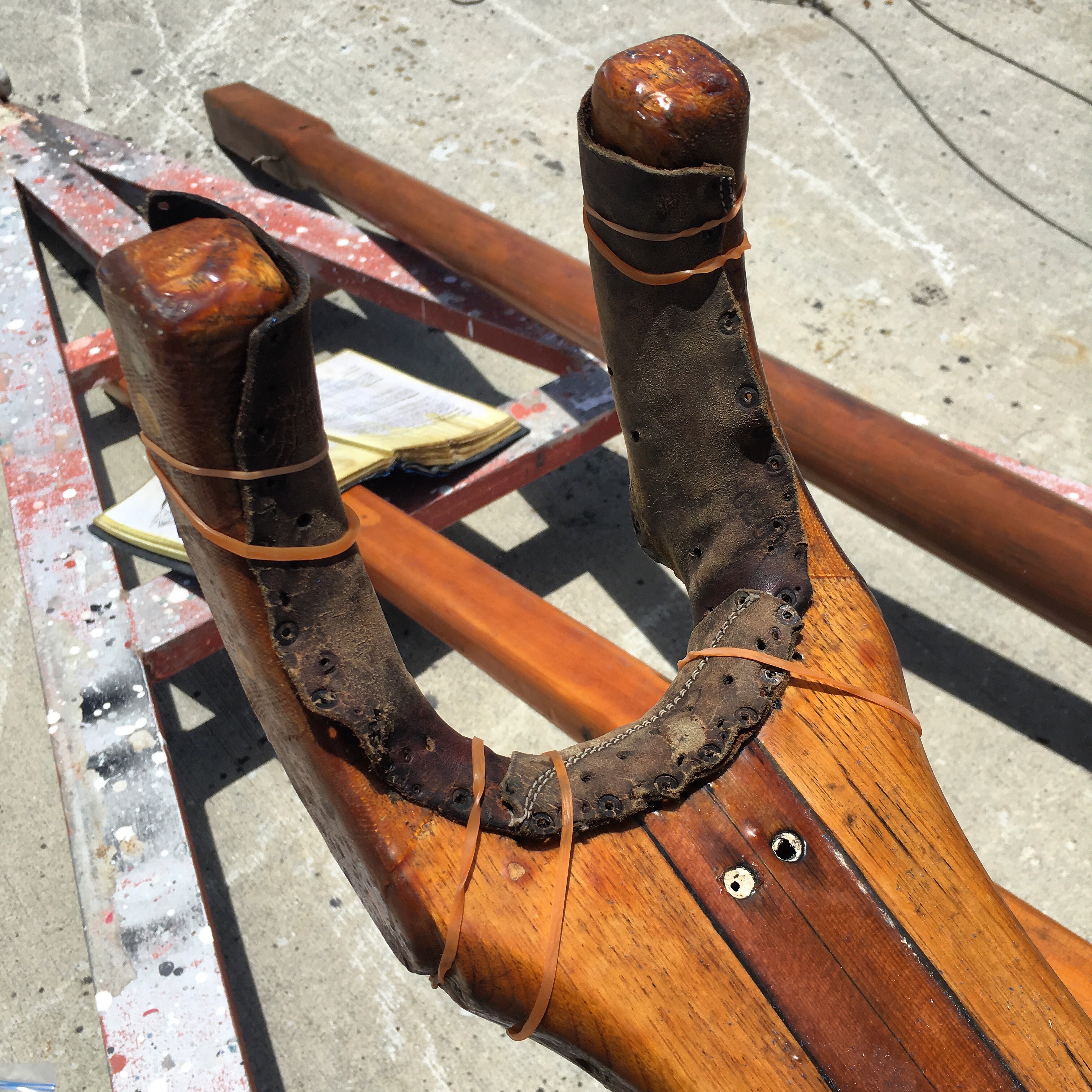 The jaws of the gaff on a Norfolk Gypsy are lined with leather. The previous owner removed the leather parts and they have spent 10 years drying out into hard boards. I soak them in leather restorer stuff and they become pliant, supple and adorable. Leather is amazing stuff.