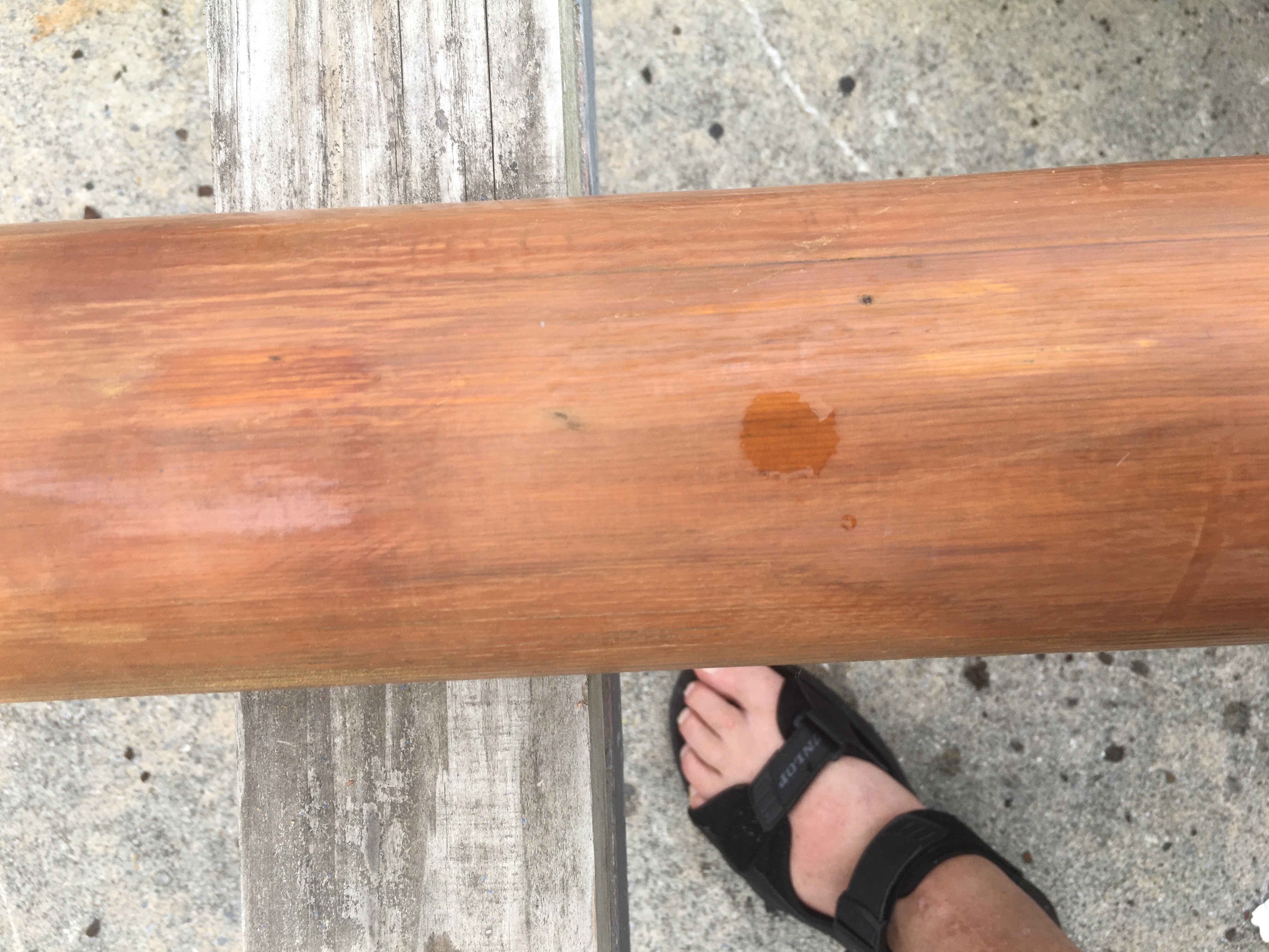 It turns out that the sanding is the hardest part. It is the rainy season in Okinawa. To tell the truth it has not rained very much so far and people are beginning to talk. It is nonetheless very hot and humid. This means that I lose a liter of fluids an hour through perspiration and much of this drips onto whatever I am trying to sand. This turns sandpaper sludgy.