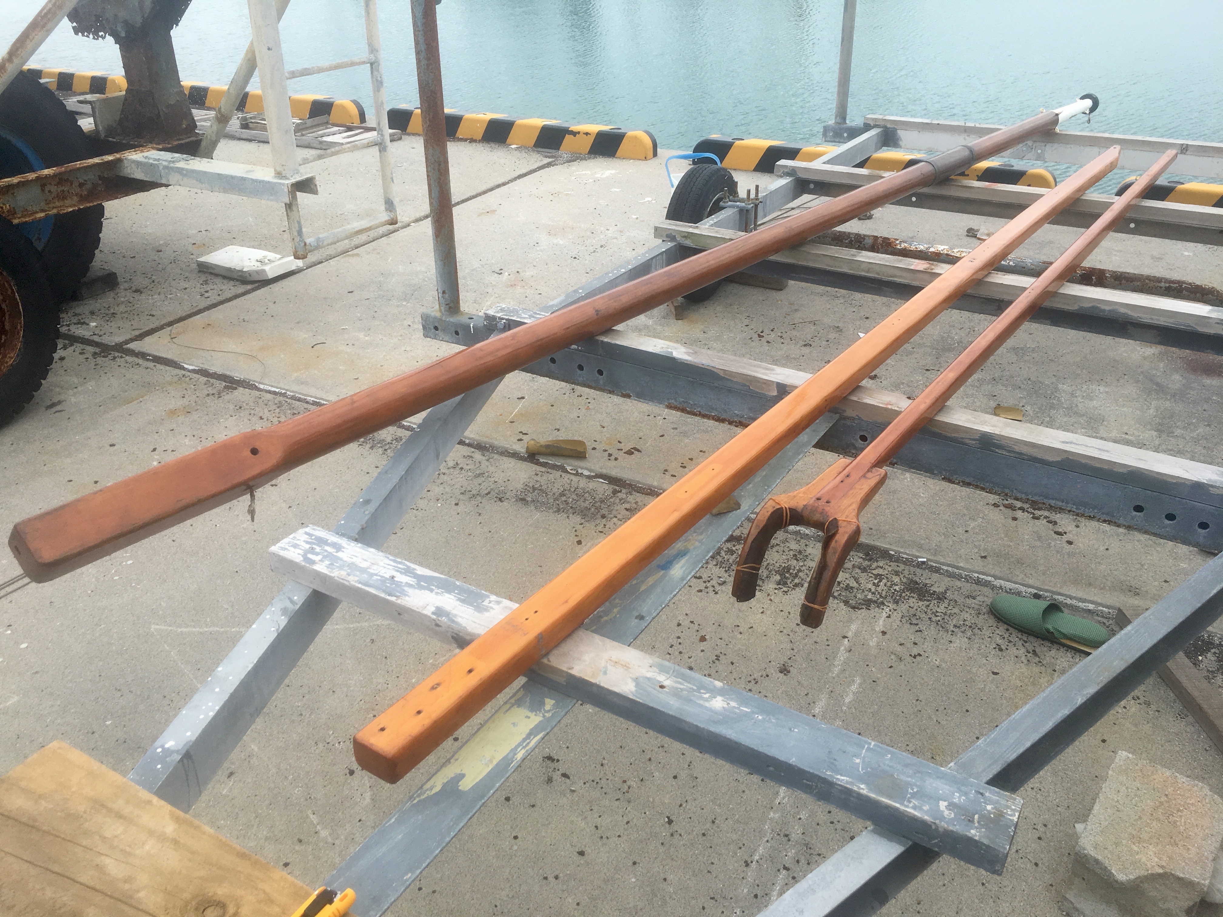 I move onto another stage of the refit – the mast, the boom and the gaff. In fact all of these are in very good condition. It is just a case of washing off 10 years of grime, sanding down and varnishing.