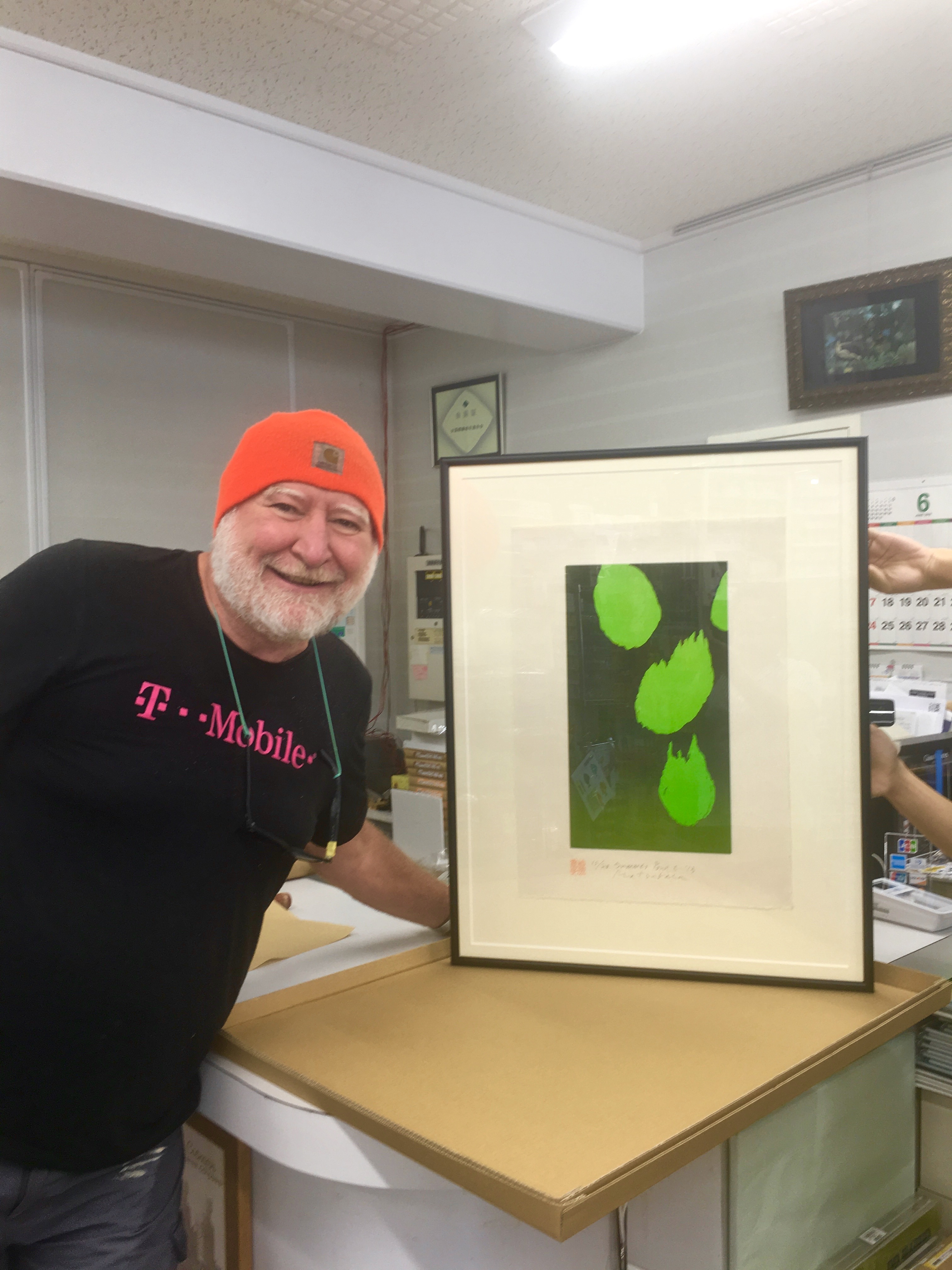Excitement. I go to the framing shop to pick up my now er framed Matsubara work.