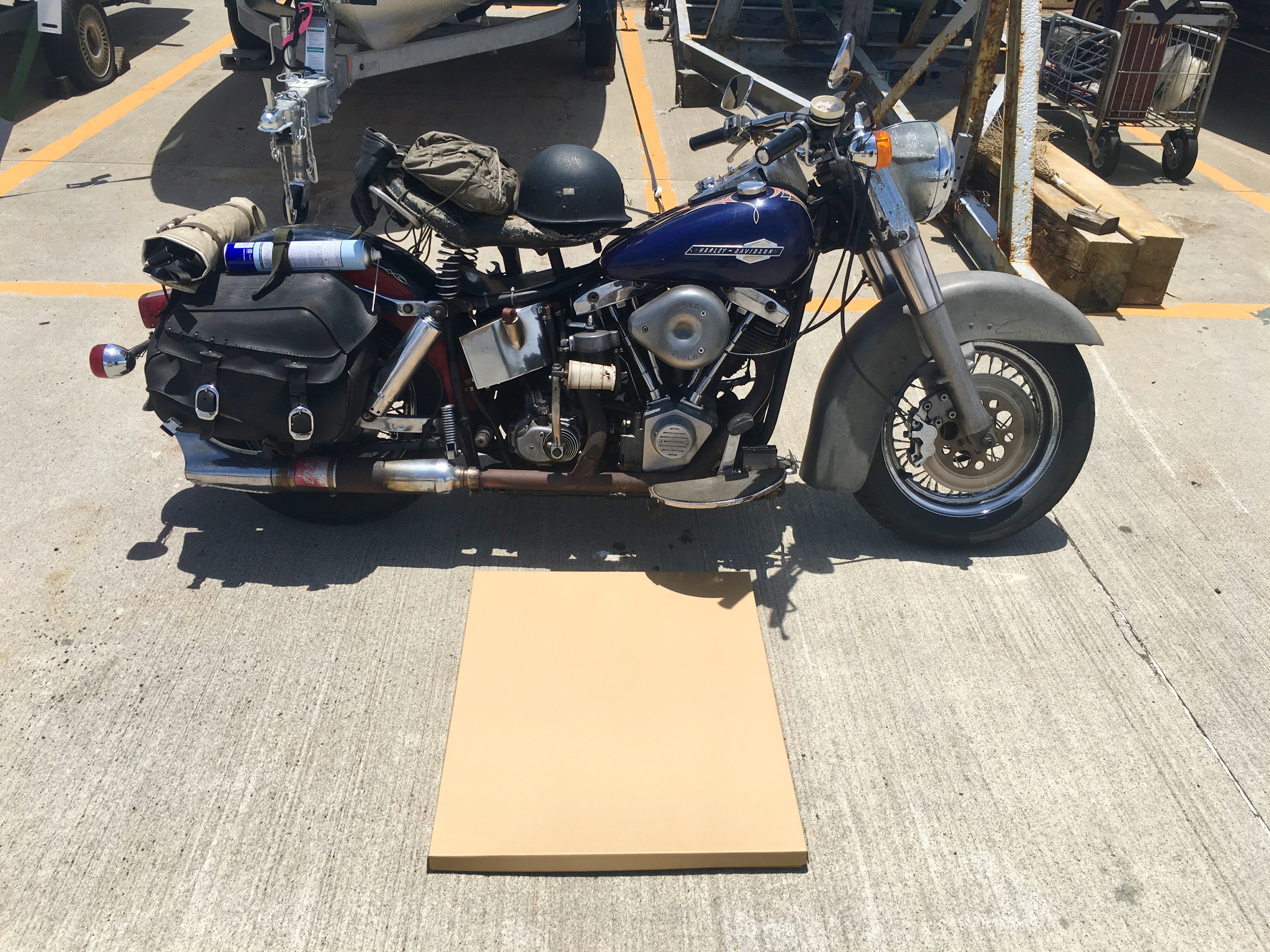 As I stop the truck in front of the high perched boat, Kiyuna san rumbles up behind me.