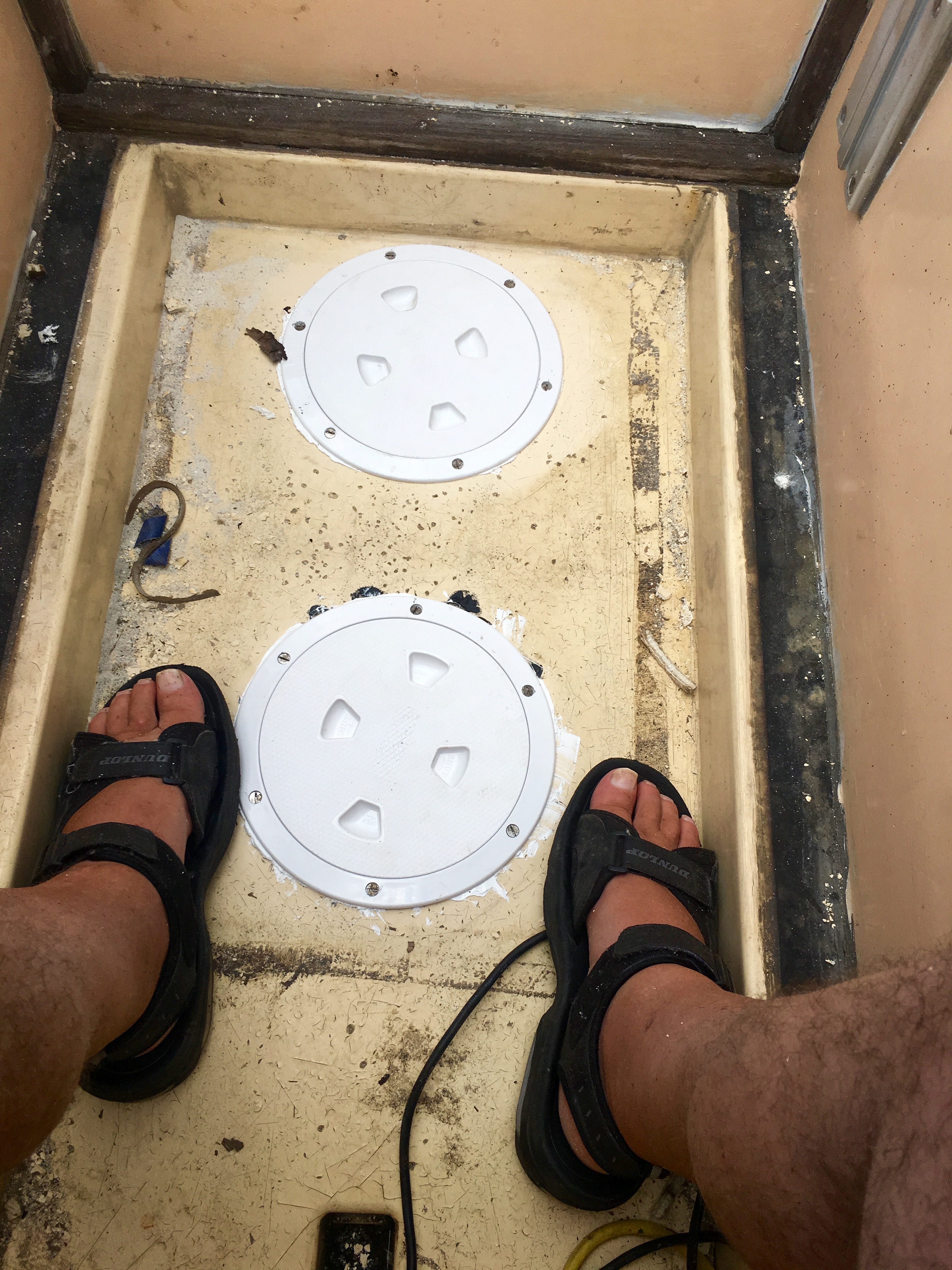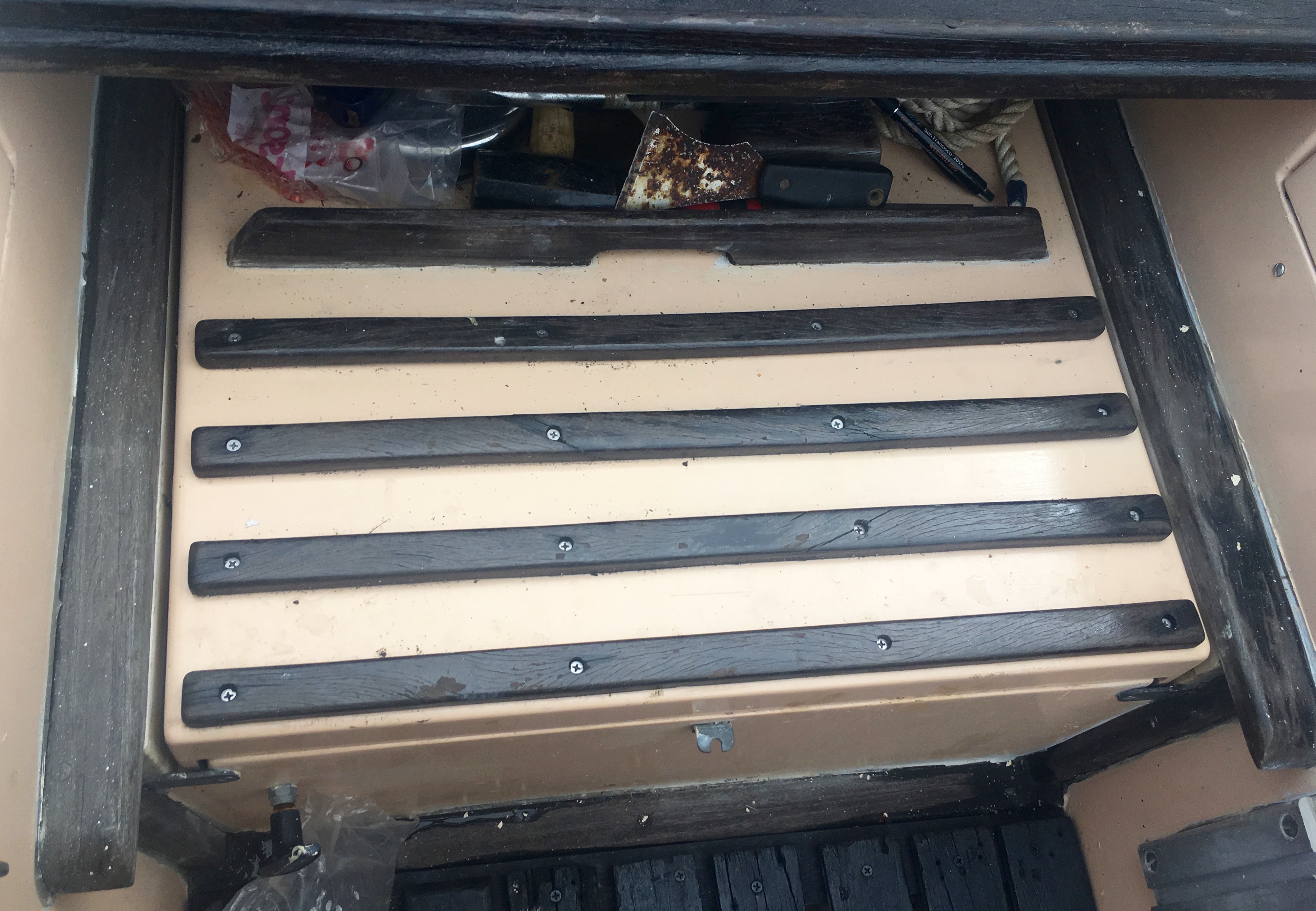 So, this is an interesting example of my advancing age. I place the beading and reach for the box, in which I have stored the screws. It is not there. I look around the vicinity, I look in the cockpit and cabin of the boat, I look in the car, I go to the toilet and drinks machine, which I had recently visited; the screw box has disappeared. I repeat all the above. Nothing.