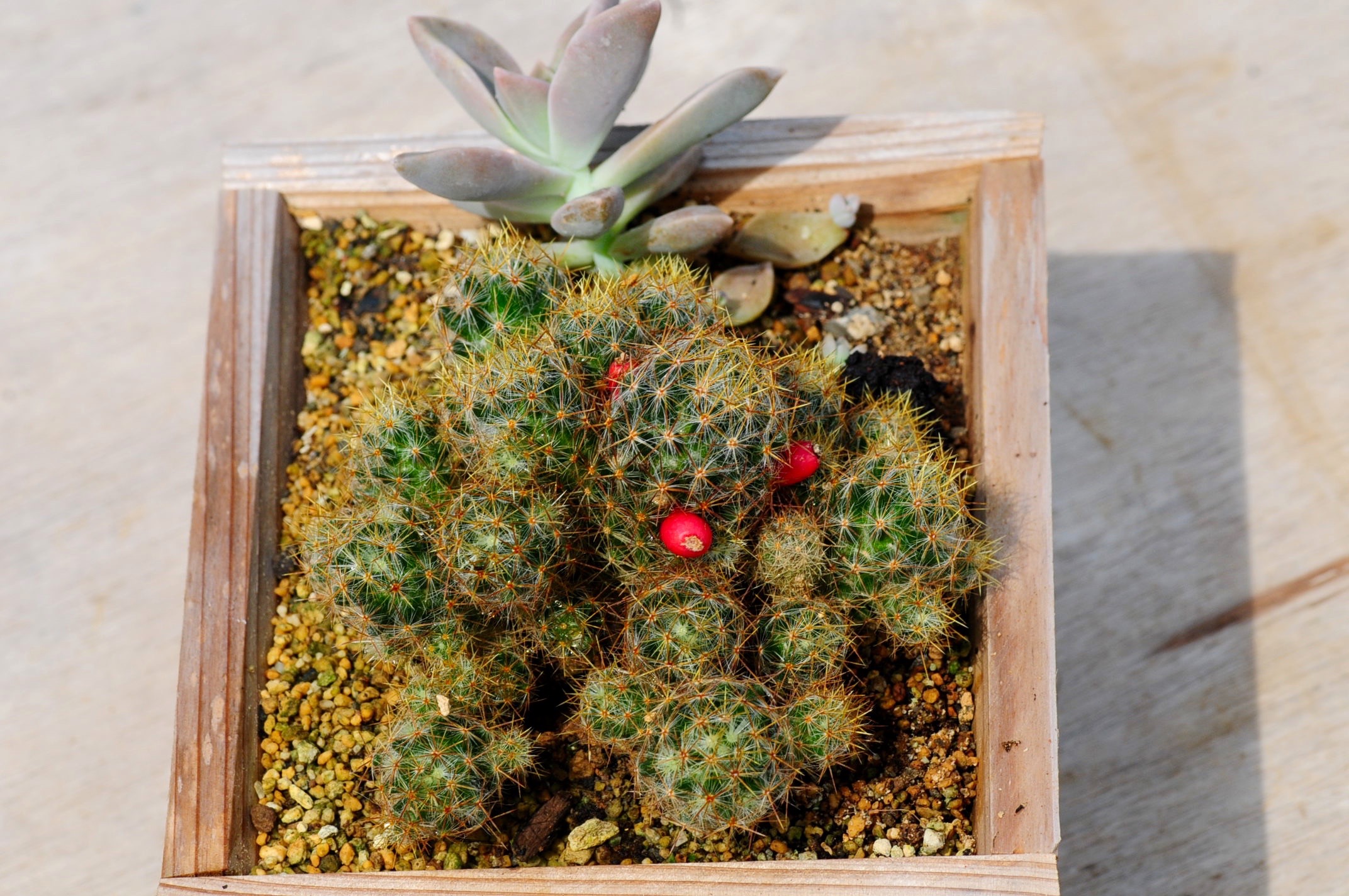 Anyway, as I am wandering around the old man wanders up with a wooden box containing a cactus and some succulents.