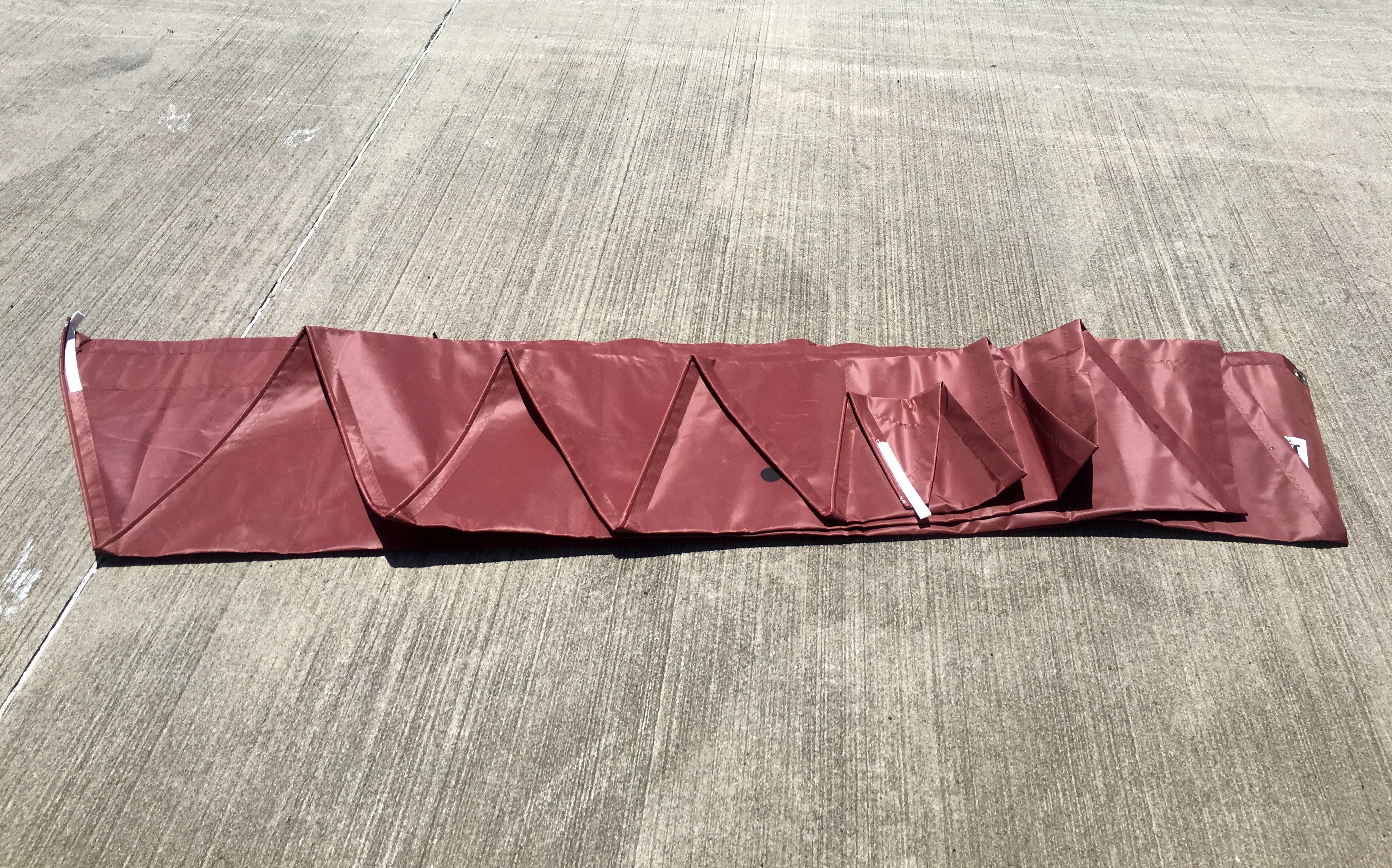 Reefing a sail means making it smaller. This is very important as you do not want to have too much sail up in strong winds or else the boat will blow over and you will drown. The Norfolk Gypsy has a sophisticated method for reefing the mainsail. This is predicated by the existence of a plate attached to the gooseneck pin with two small double blocks attached to it, which the reefing lines go through. Are you with me?