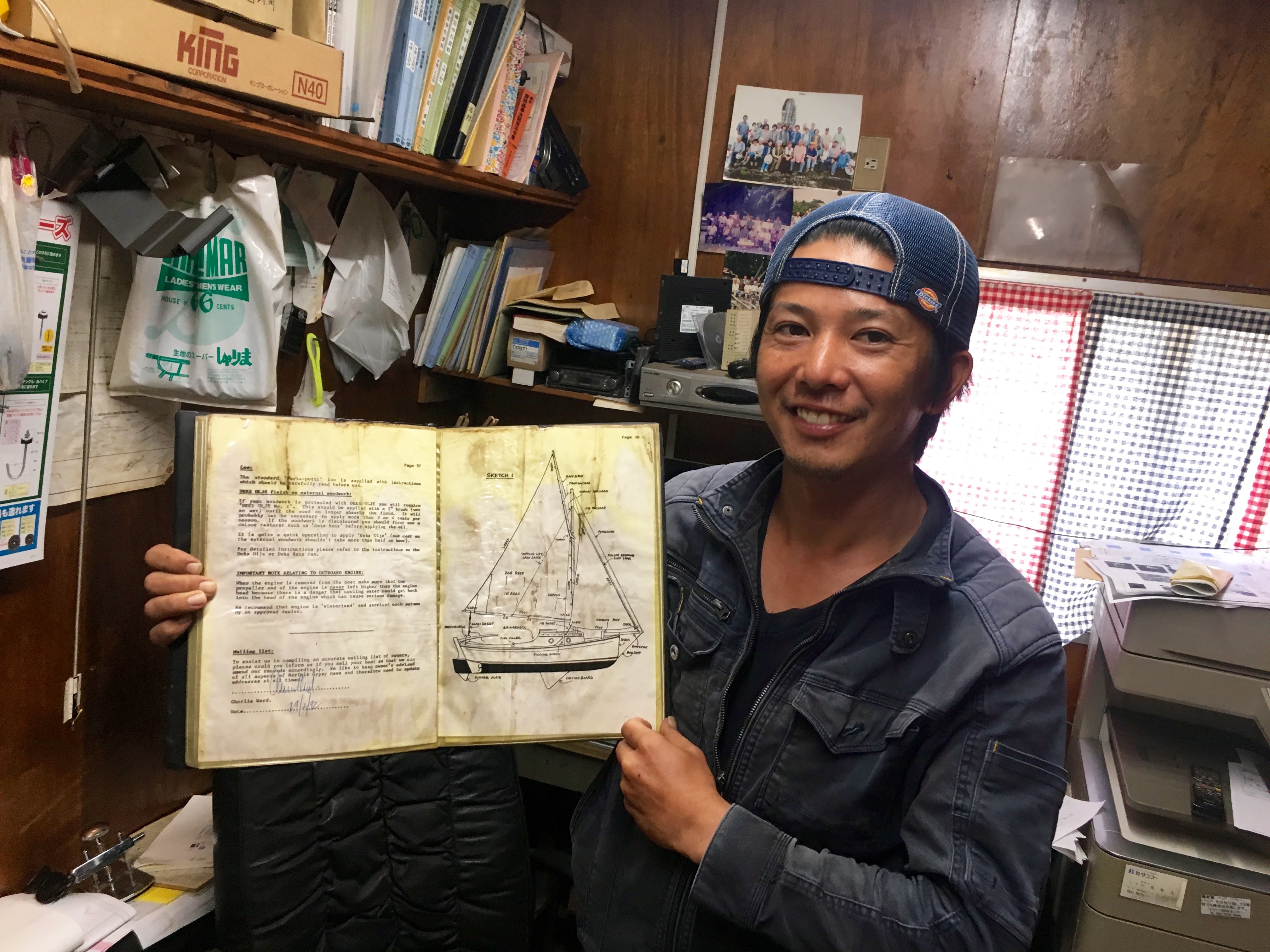 Nagahama san is the boss here. He is young but has obviously got it. We discuss making a new reefing block support plate. You would think that this would be difficult seeing that I speak limited Japanese and he speaks limited English. I have worked with him before. https://quietripple.wordpress.com/2018/01/29/skegness/ It makes me happy that complex design questions, how long? how wide? what weld? what bracket? what diameter fixing hole? can be resolved through common excitement rather than advanced language skills.