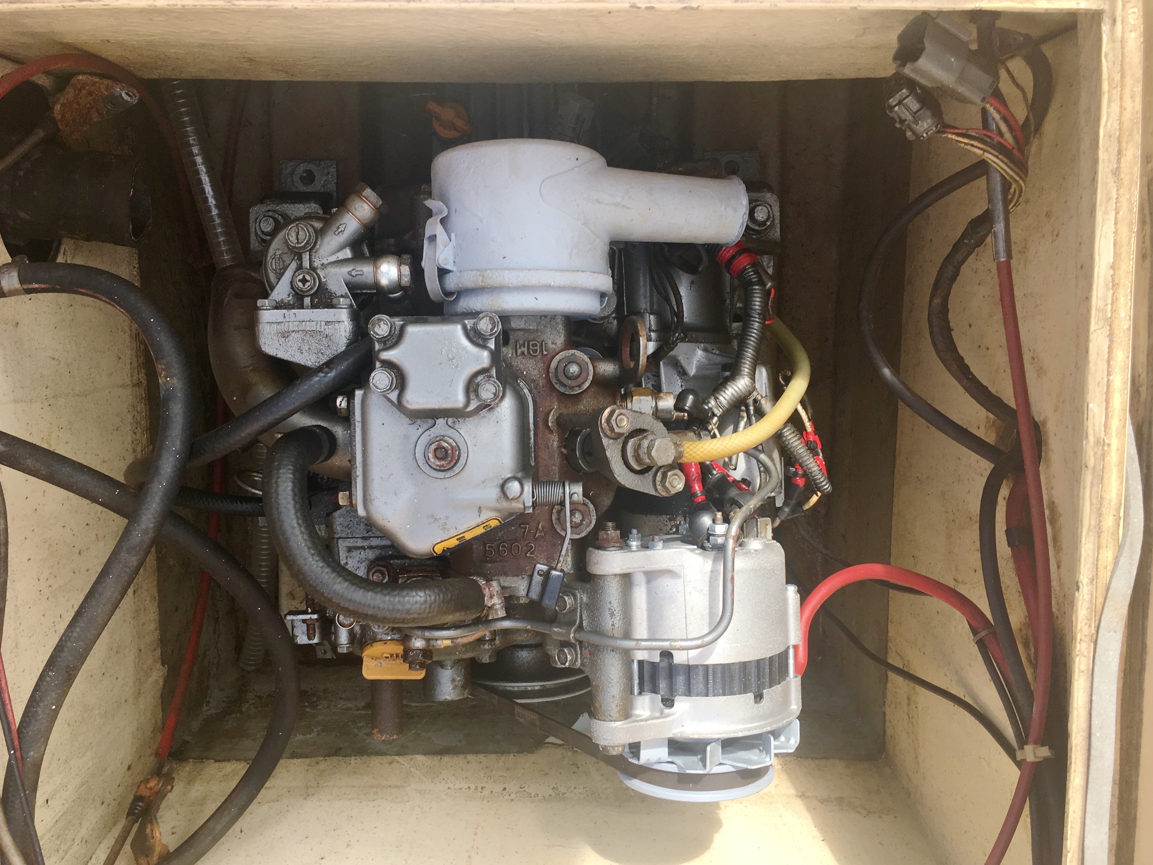 Today I rush down to Ginowan and find the Yanmar nestling in the boat.