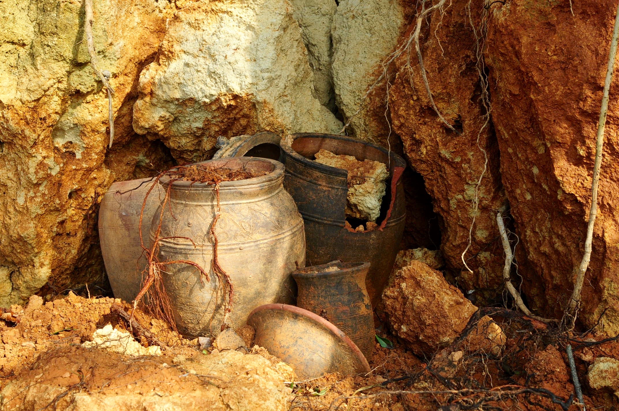 I think the recent mega typhoon destroyed some very old caves containing burial urns and some of these broken urns are now strewn all over the beach.
