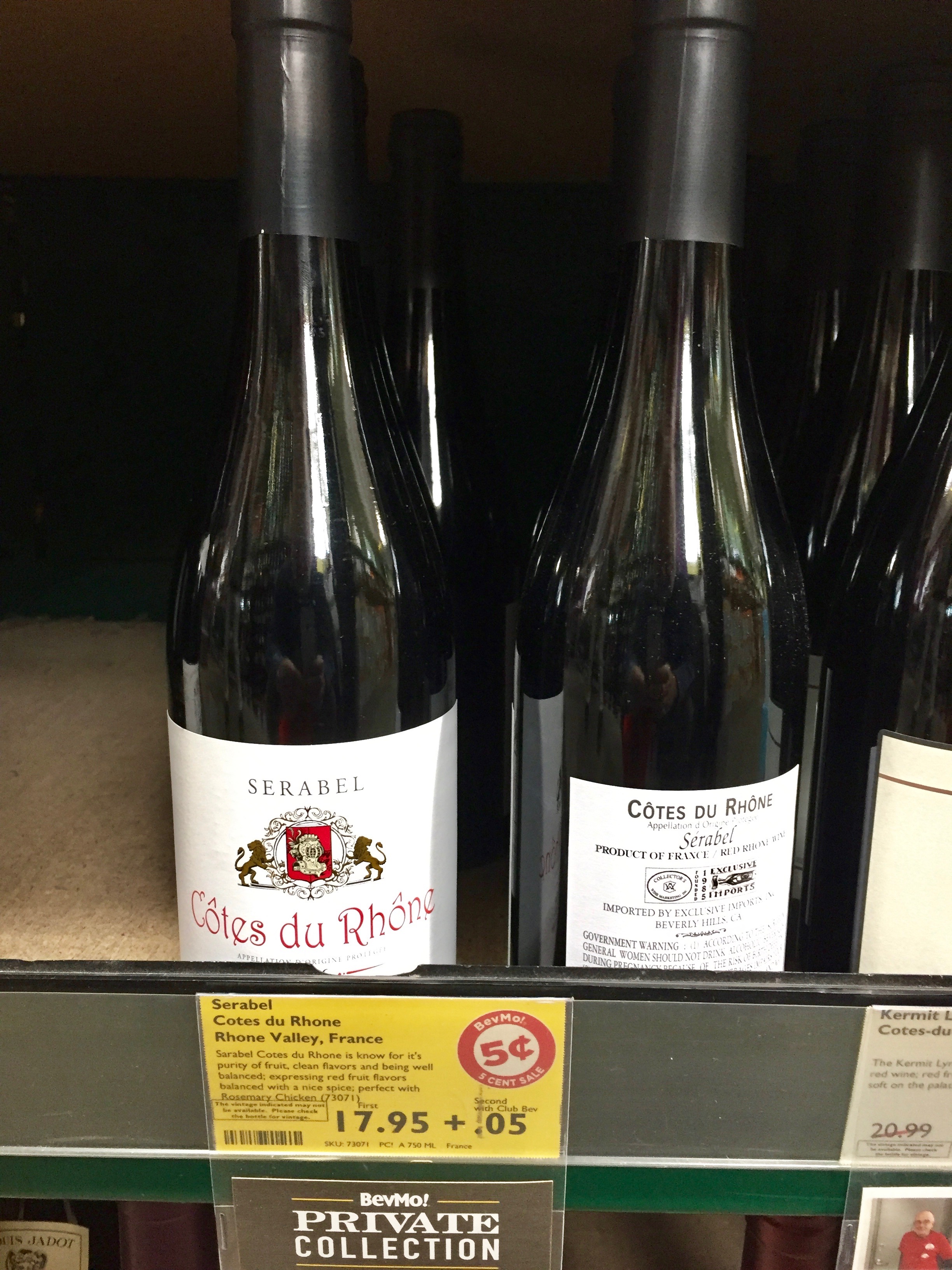 That bottle offer in Bevmo is what we call a BOGOF scam. Take a cheap bottle of wine and offer two of them for fractionally less than twice what you claim to be your normal price and in roll the profits! That Serabel Cotes is on sale here for some 8 pounds a bottle in various places so not so far off the asking price there. Probably nothing wrong with the wine at that price but it’s an old trick now.