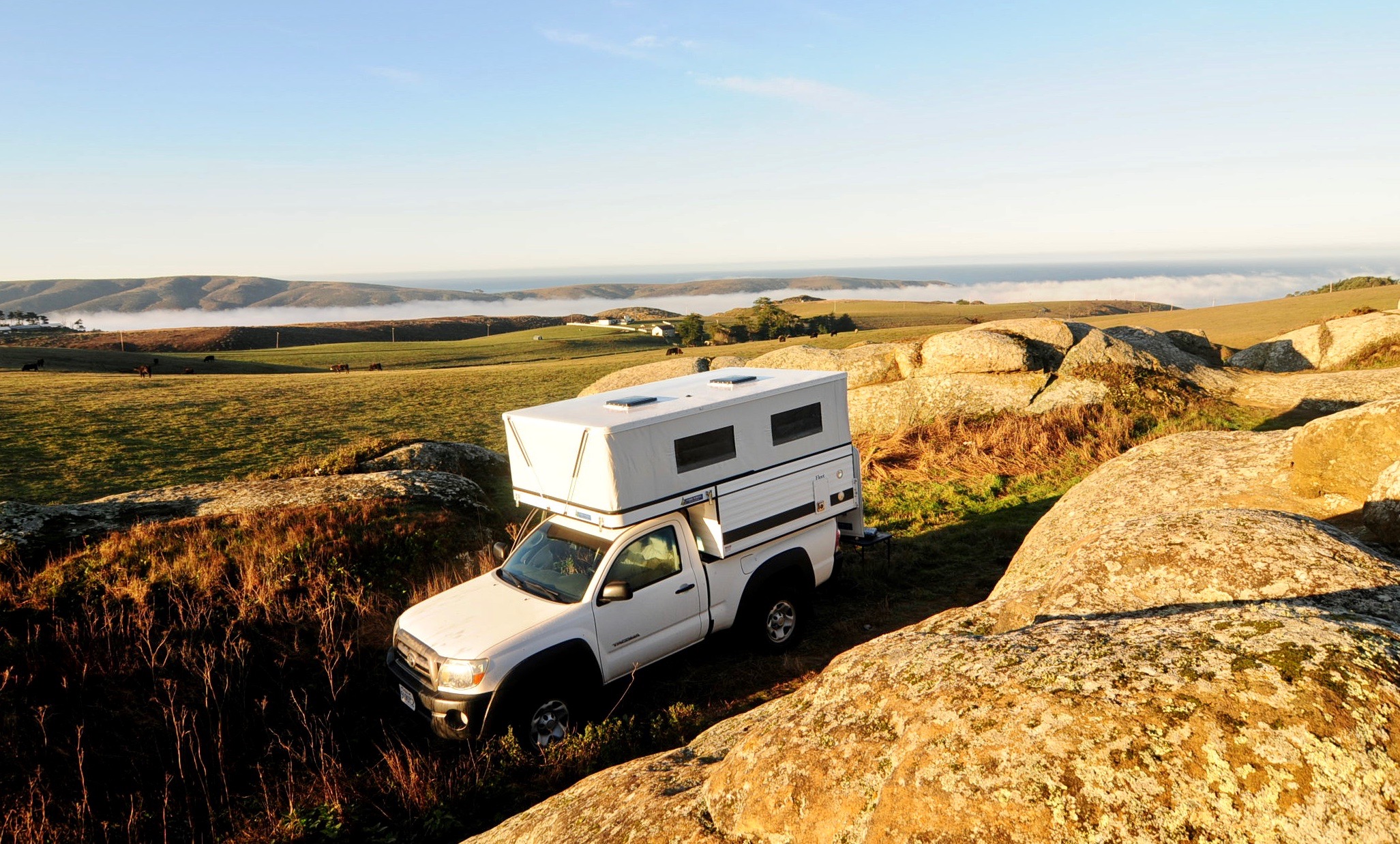 I think half the population of San Francisco had the same idea as the whole park was thronged. The number of people somehow made the slow, lonely pastime of birdwatching inappropriate. How many people with binoculars do you see at Disneyland? This put me into a bad mood, which only got worse as I struggled to find somewhere to spend the night. Campsites near Point Reyes are grim and full. I head for the hills but find only private property and gated tracks. It is now dark and I am considering returning to San Francisco when I see a huge, rented, furniture truck parked amongst rocks near Dillon Beach.