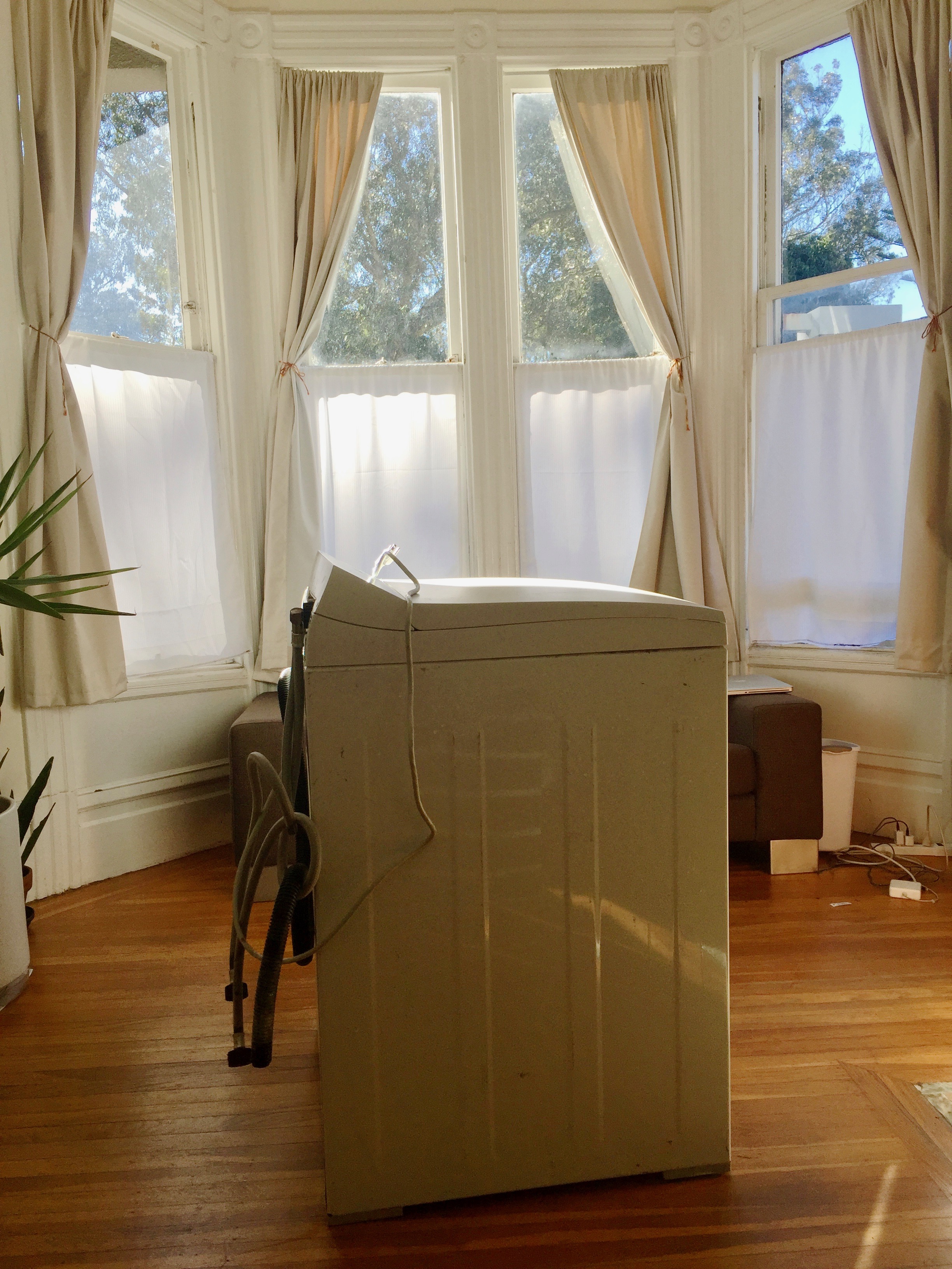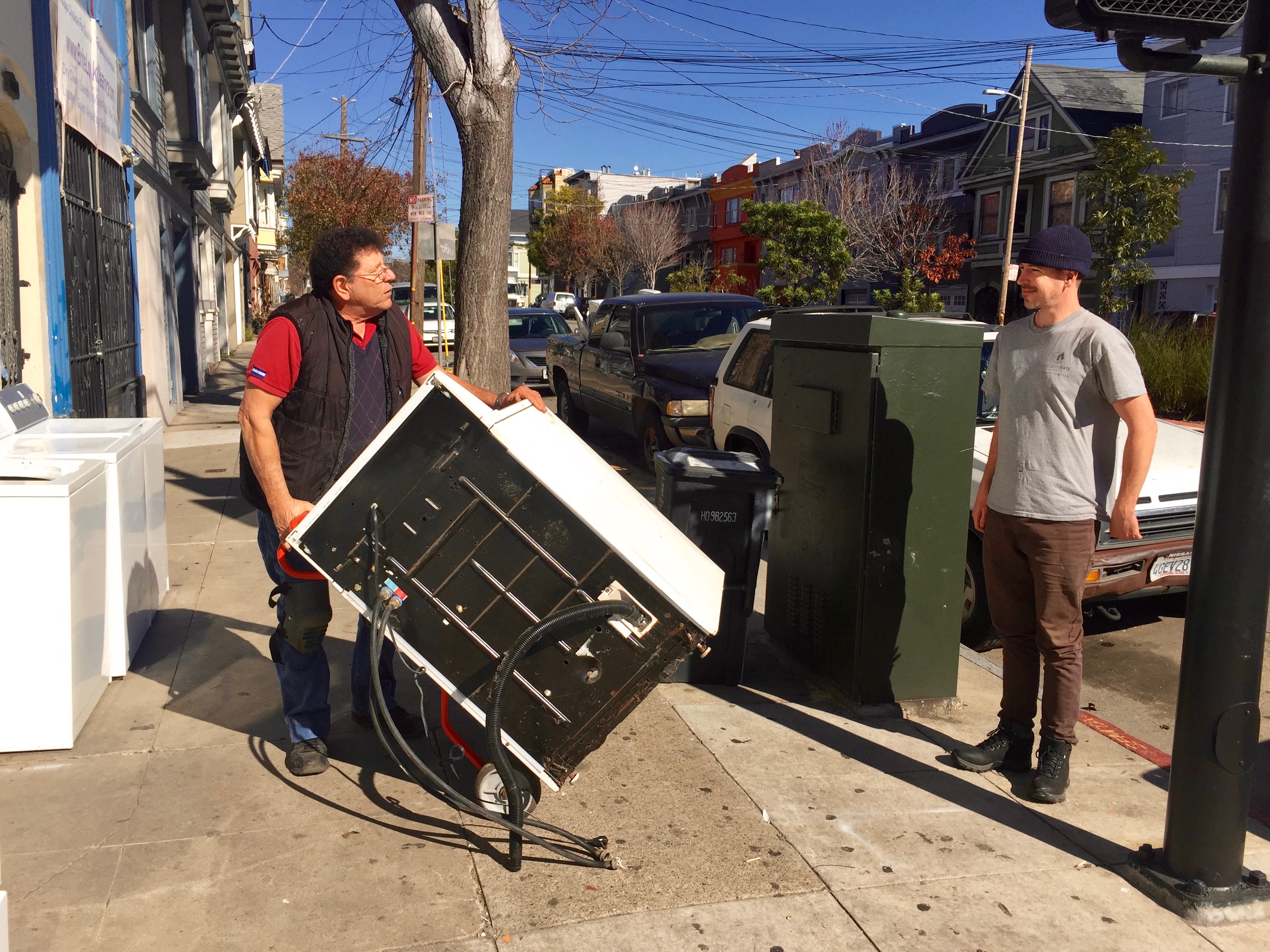 We then load the old washer into the truck and take her to the home for old washing machines in the Mission.