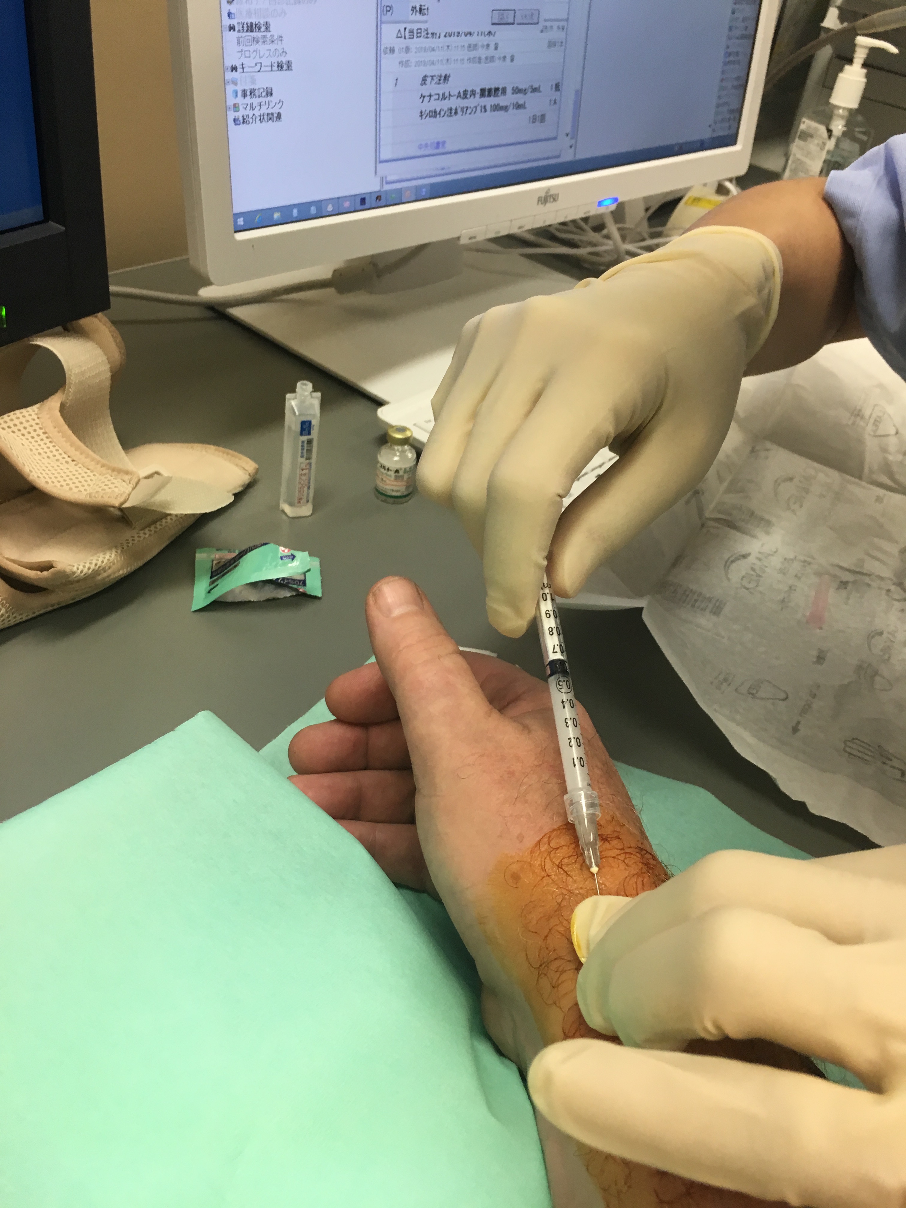 I go to the Onna clinic and they give me painkillers but say come back as the Sensei does not think that this is a cure. It is not, and I am referred to a specialist at Chubu Hospital.