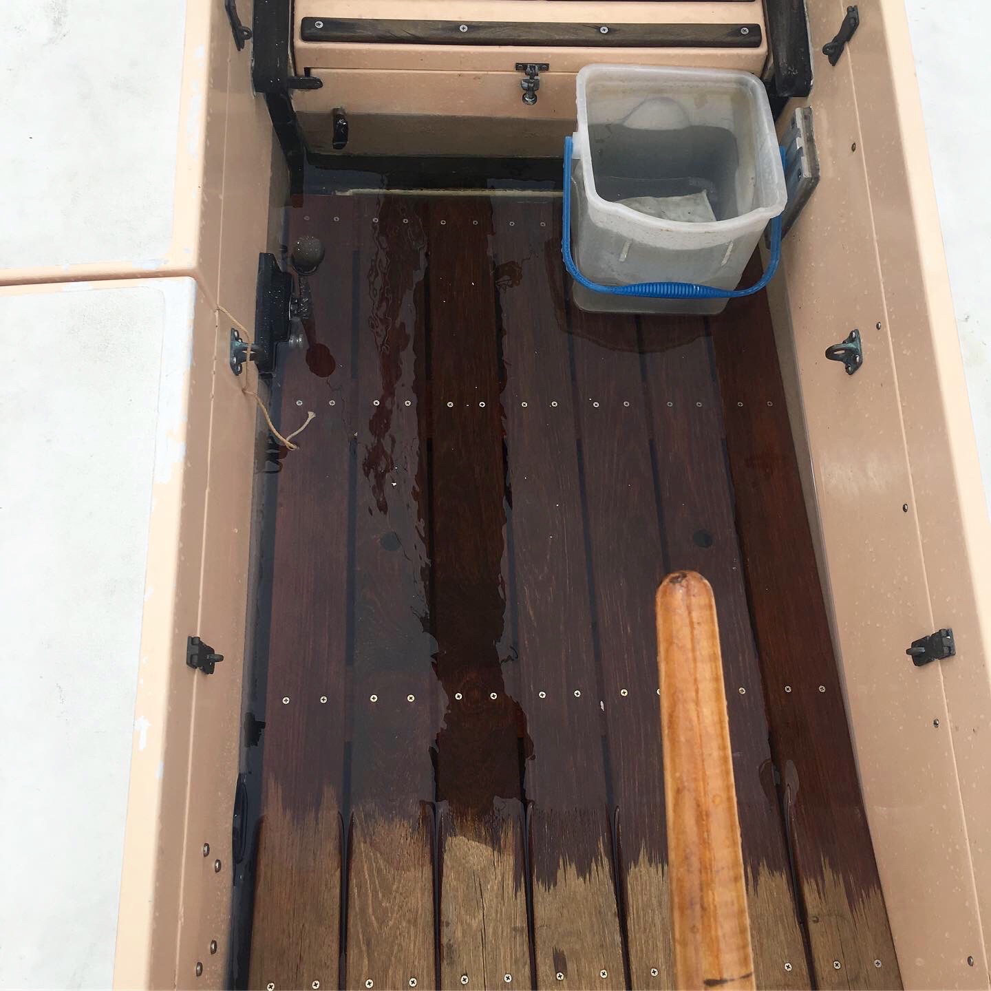 It hosed down last night. I get to the boat to find the grating floating around on over 2 feet of water.