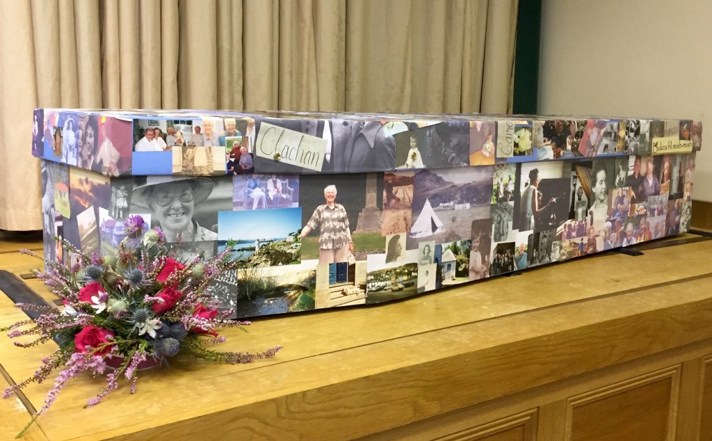 We, my sister and brothers with partners met the day before the cremation to decorate the coffin with hundreds of photos that spanned my mother’s life. This was a good event as we discussed each photo, ooh’ed at photos we had forgotten, marveled at her beauty as a young woman. With wars, uprisings, 4 children and so much more; she had an amazing life. It brought us very close together. Thank you Rosy for coming up with the idea.