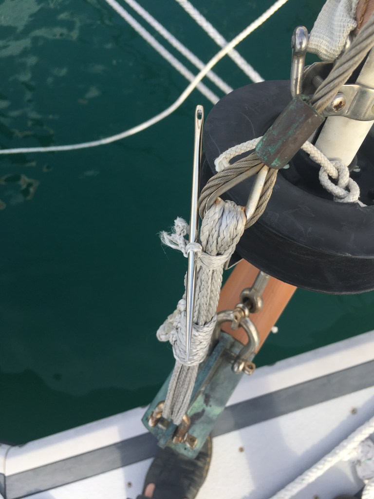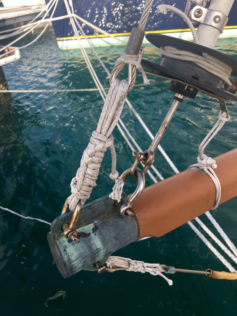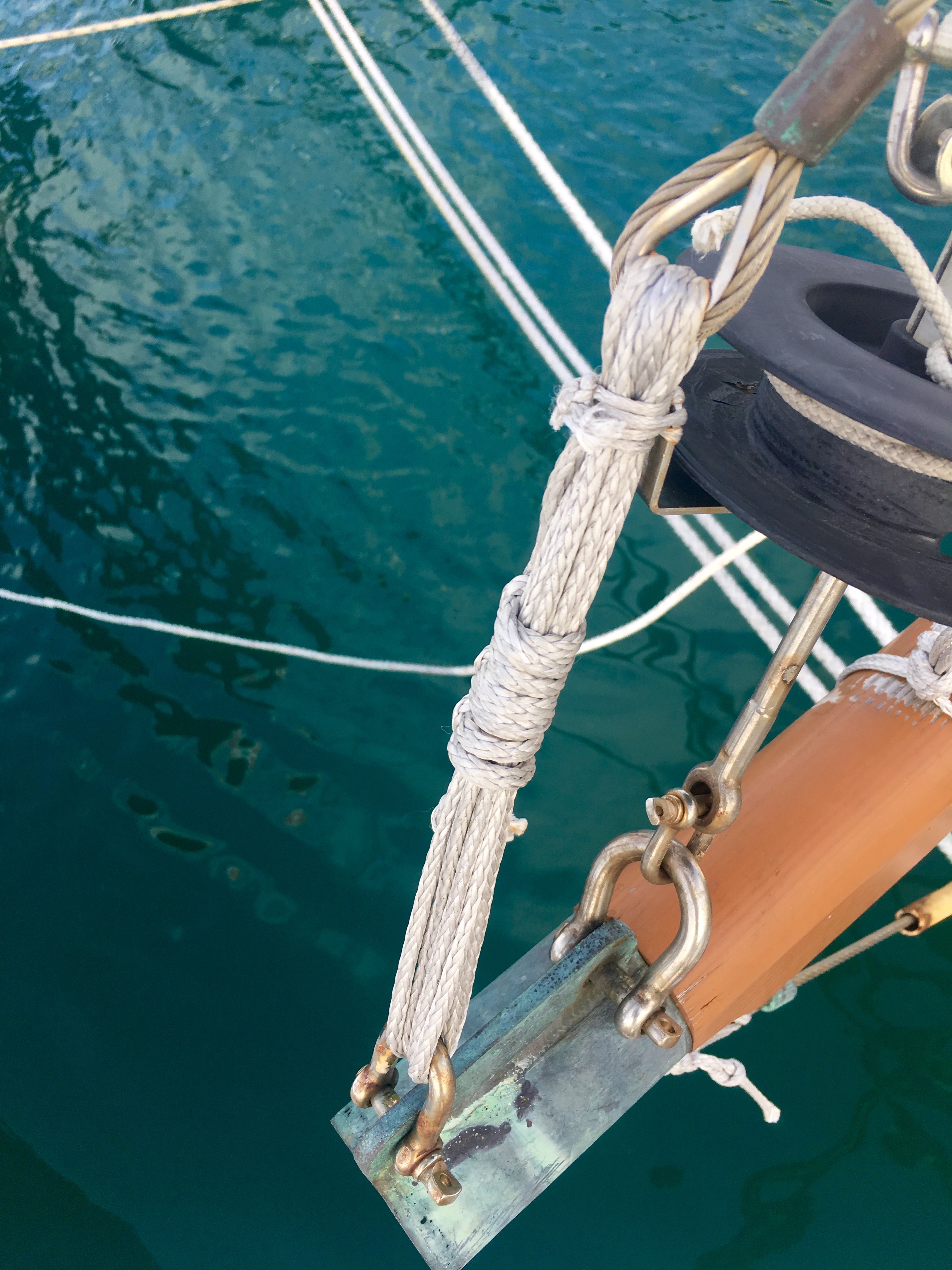 You can see how much shorter the forestay lashing is now. Nice and tight.