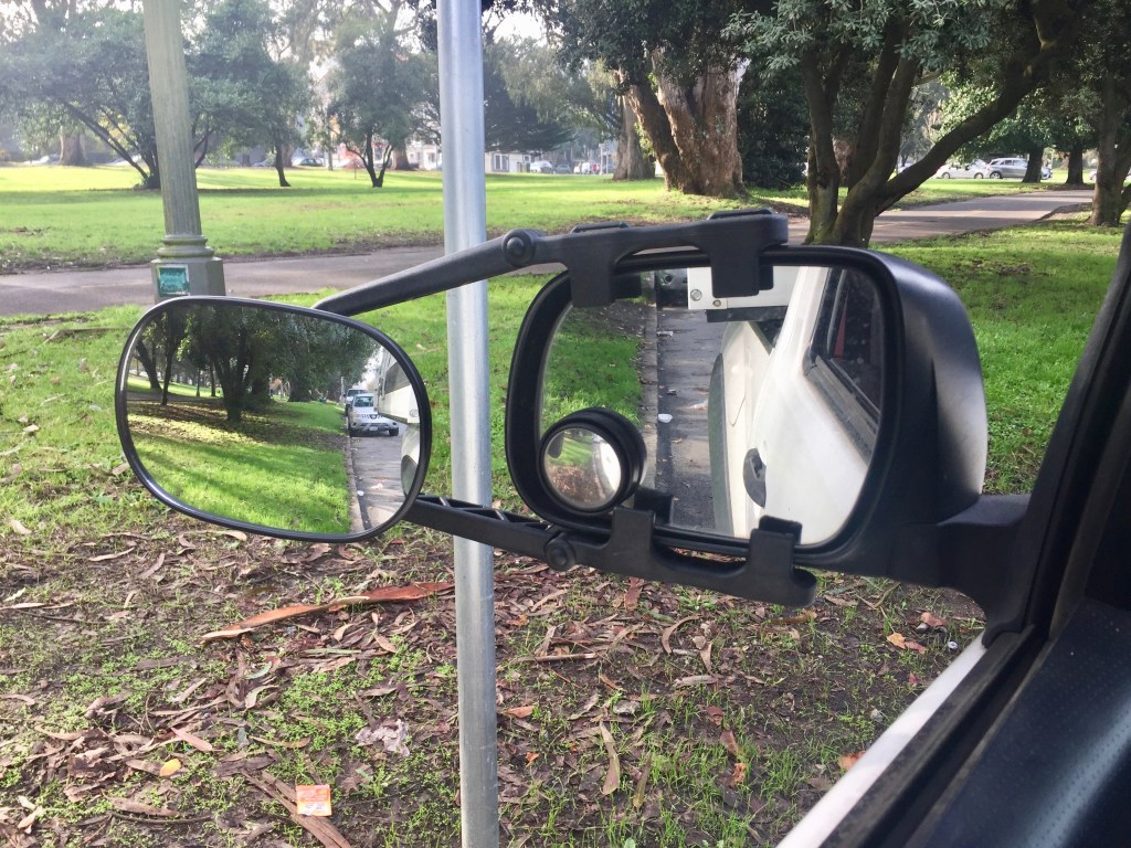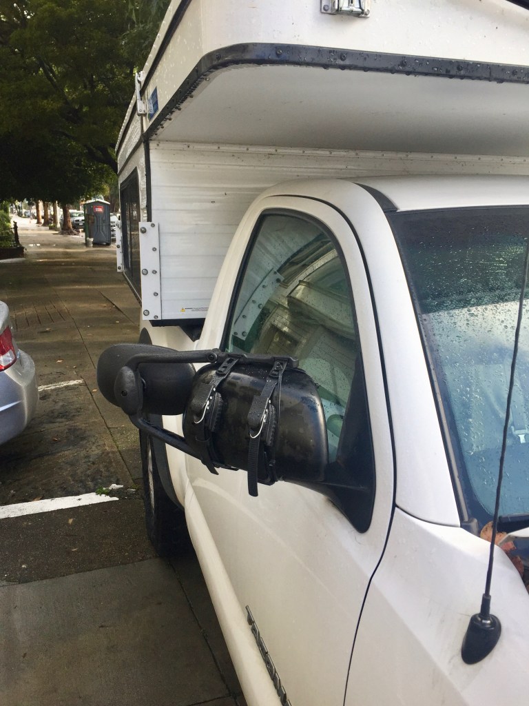One of the biggest difficulties of driving the truck plus camper is that you have very poor rear vision. The camper is too wide for the standard mirrors to see around. Who are you going call? Yup, Amazon. I order up 2 extension mirrors that I arrive the next day. Amazon is incredible. No matter what obscure knick knack you want, it arrives on your doorstep usually the next day. I showed Jeff Bezos around SLAC once. He did not seem very interested but was polite.