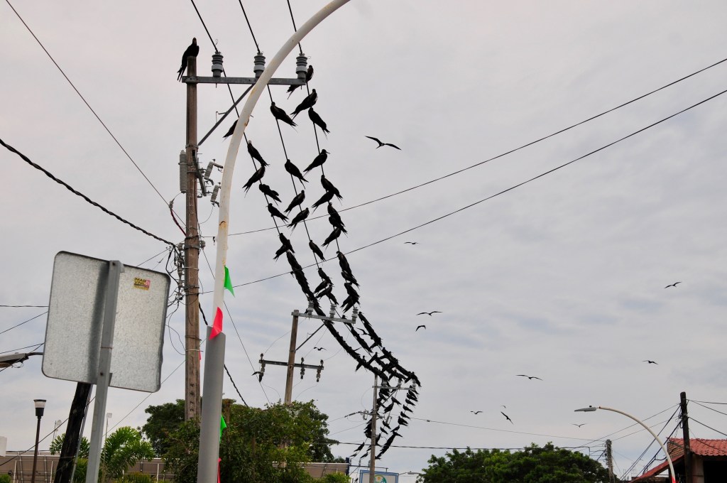 Frigate birds I have seen previously, usually flying very high and far away. I blurt, “Look, quick, a frigate bird!”