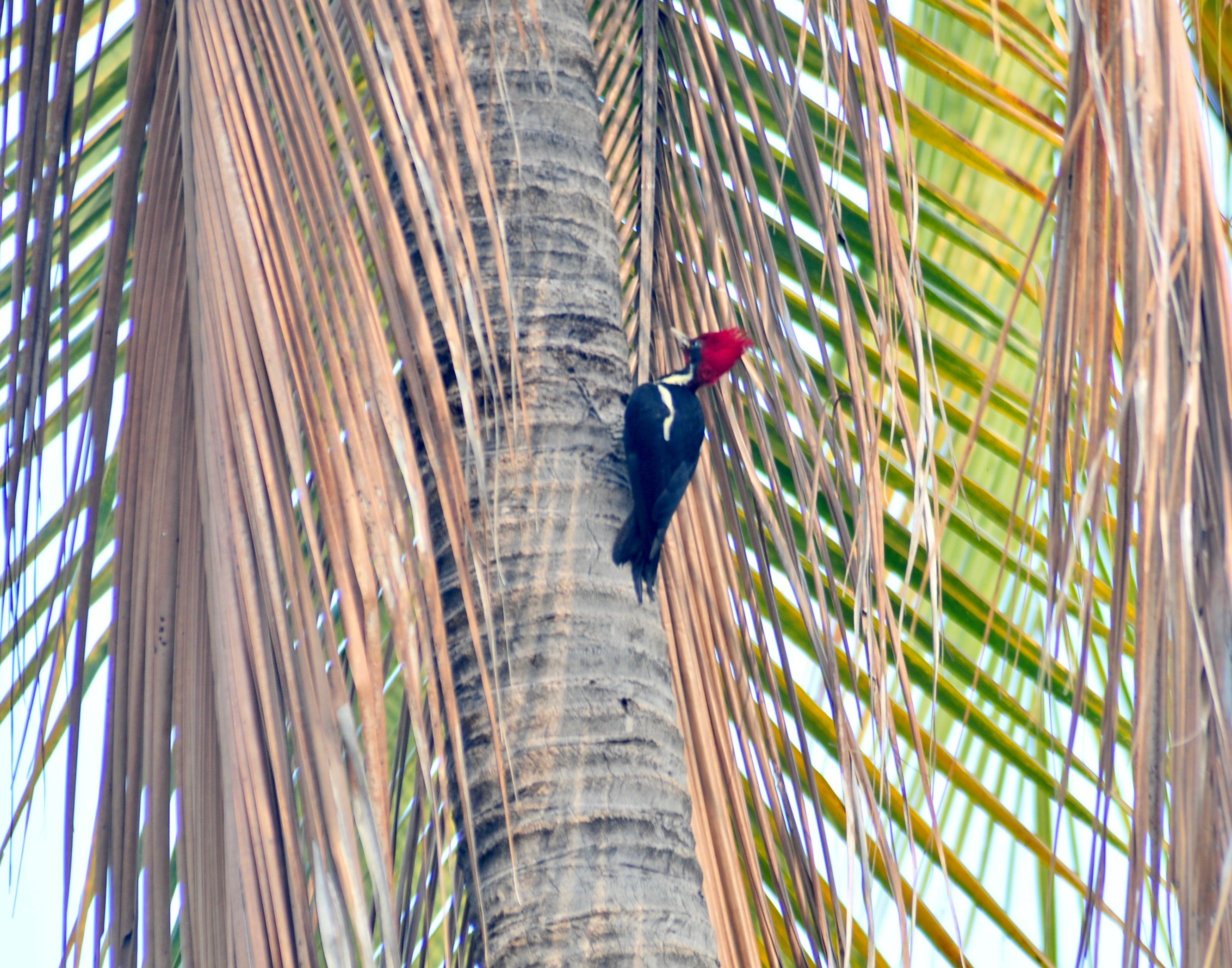 It is paradise. Perched on a cliff top overlooking the ocean, it has a sprawling park of huge trees and coconut groves. There are 2 swimming pools, hot water showers, flush toilets, a restaurant, fast wifi, hence all the recent posts, and above all birds!