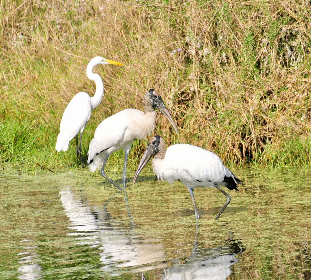 Wood Stork with Great White Egret