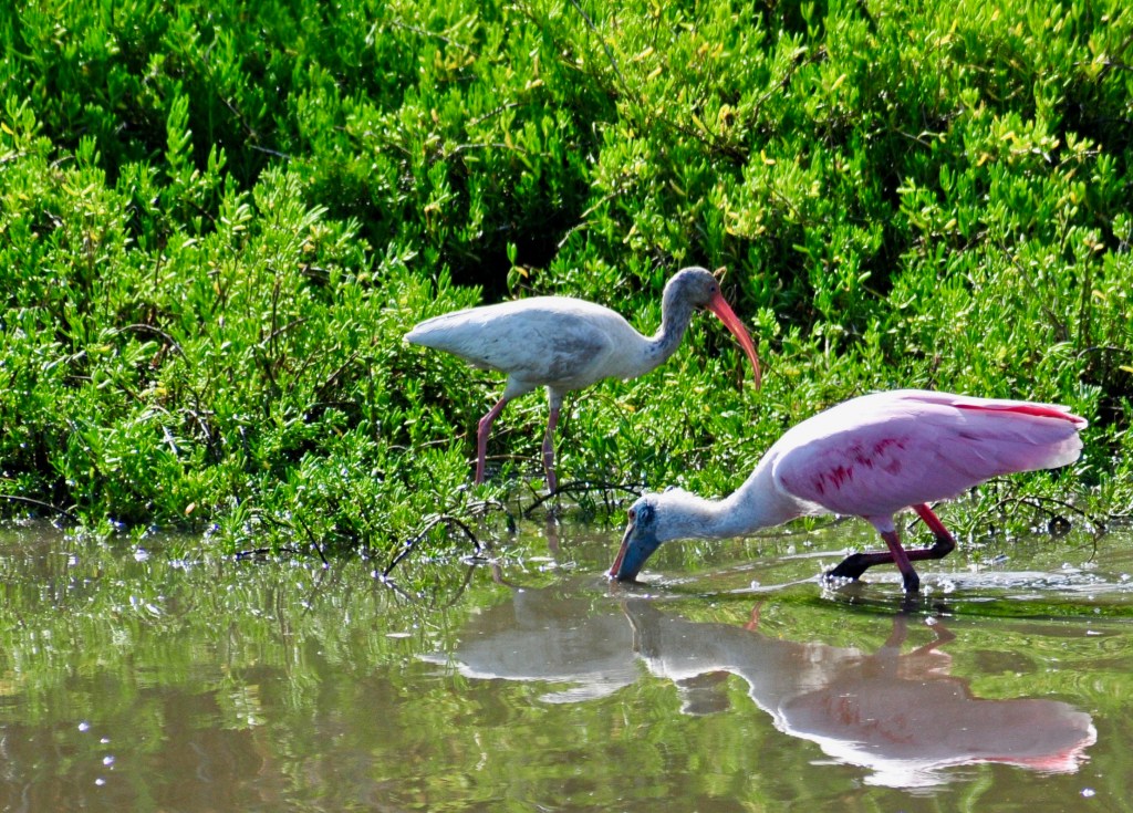 Roseate Spoonbill with White Ibis