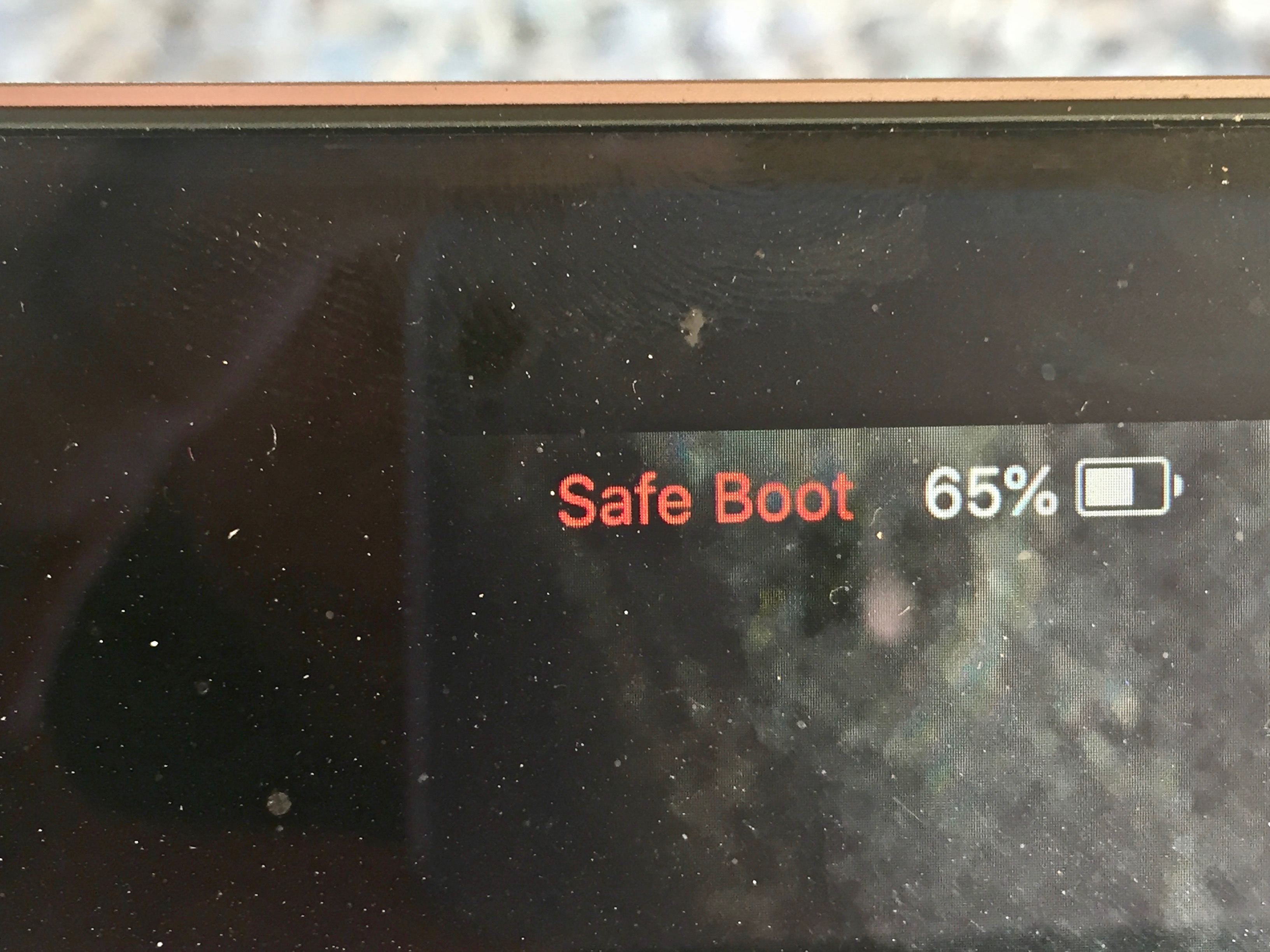 I start up my brand new MacBook to upload lots more amazing bird photos but something is seriously wrong. Two words, in suitable blood red, appear in the top right corner of the screen. “Safe Boot” they taunt. I have never seen this before. I enter my password to get access to the machine but it is refused! My Mac is FUBAR.