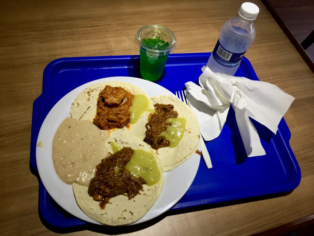 Just love the frijoles. They’ll keep you going all day (or night). Is the green slop guacamole ? And the light brown stuff ? The tortillas I recognise. Love the fluorescent green jell-o too.