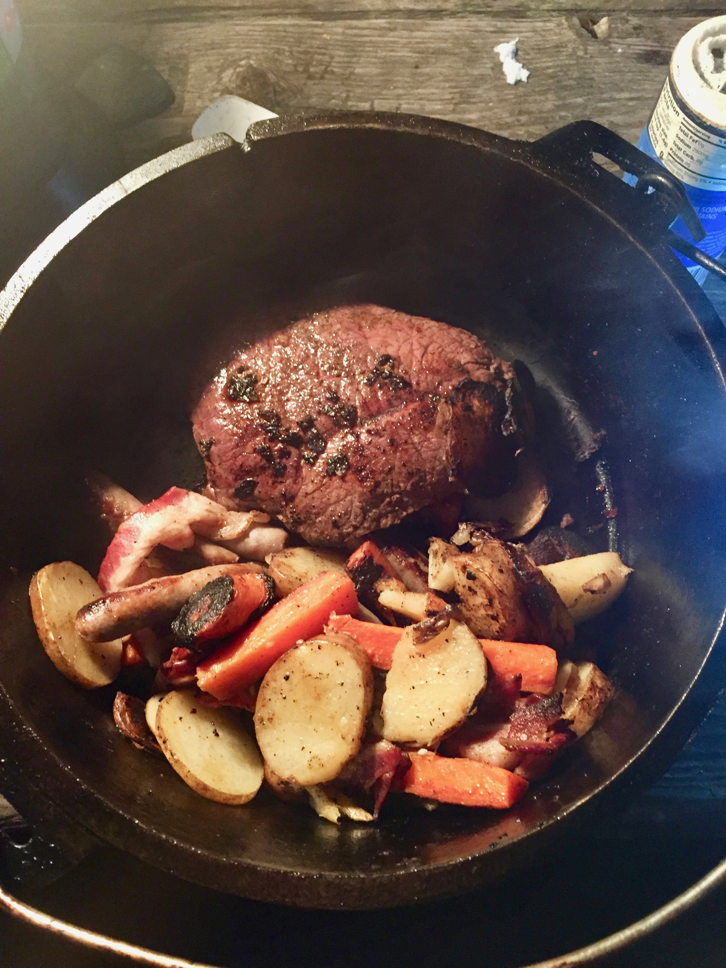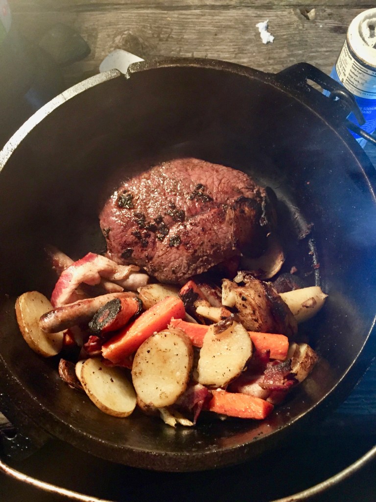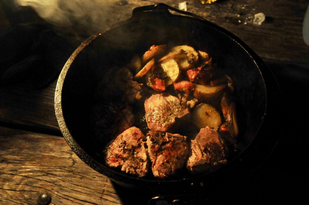 The dutch oven is the best cooking device. I only use open wood fires yet produce wonderful meals. Well, all my new bear friends said they were.