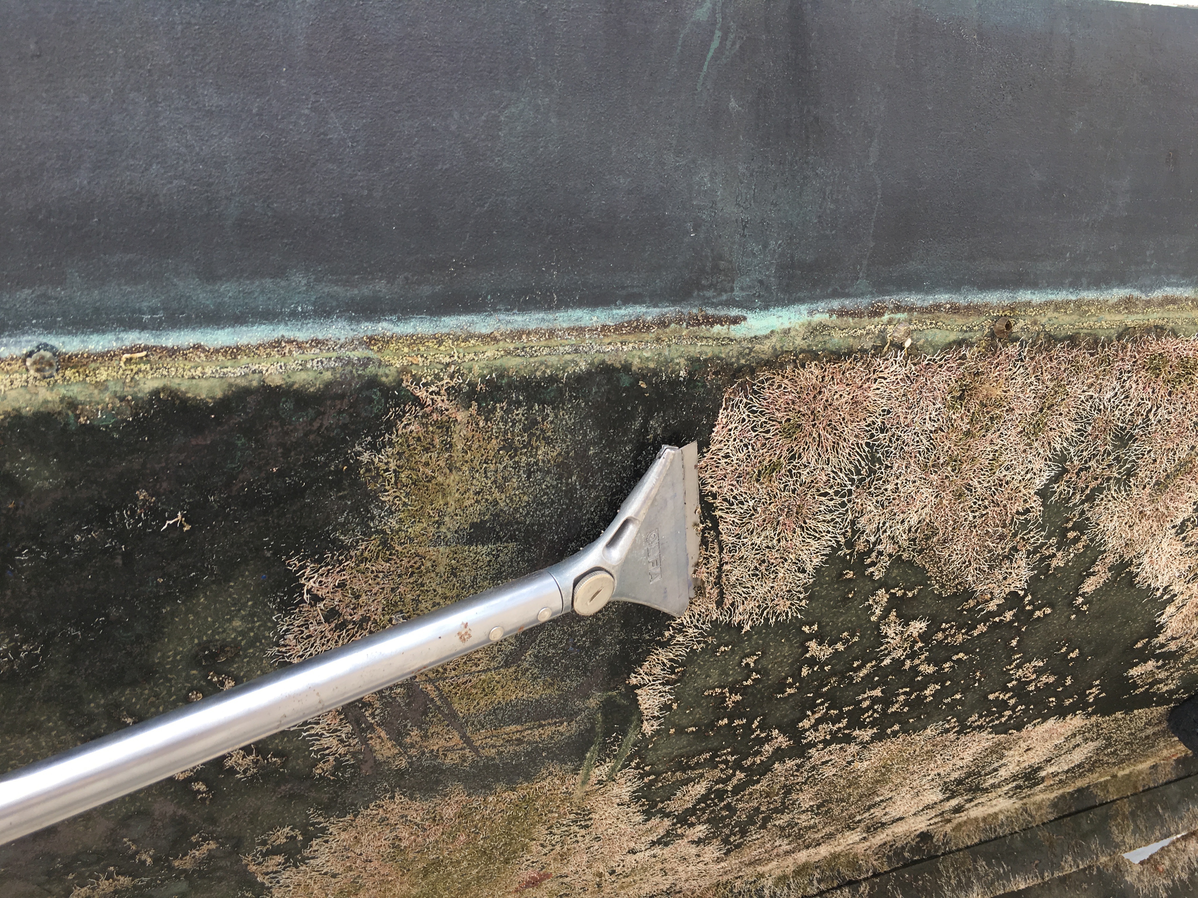 So, the bottom of the boat is covered in weed and shellfish of various denominations.