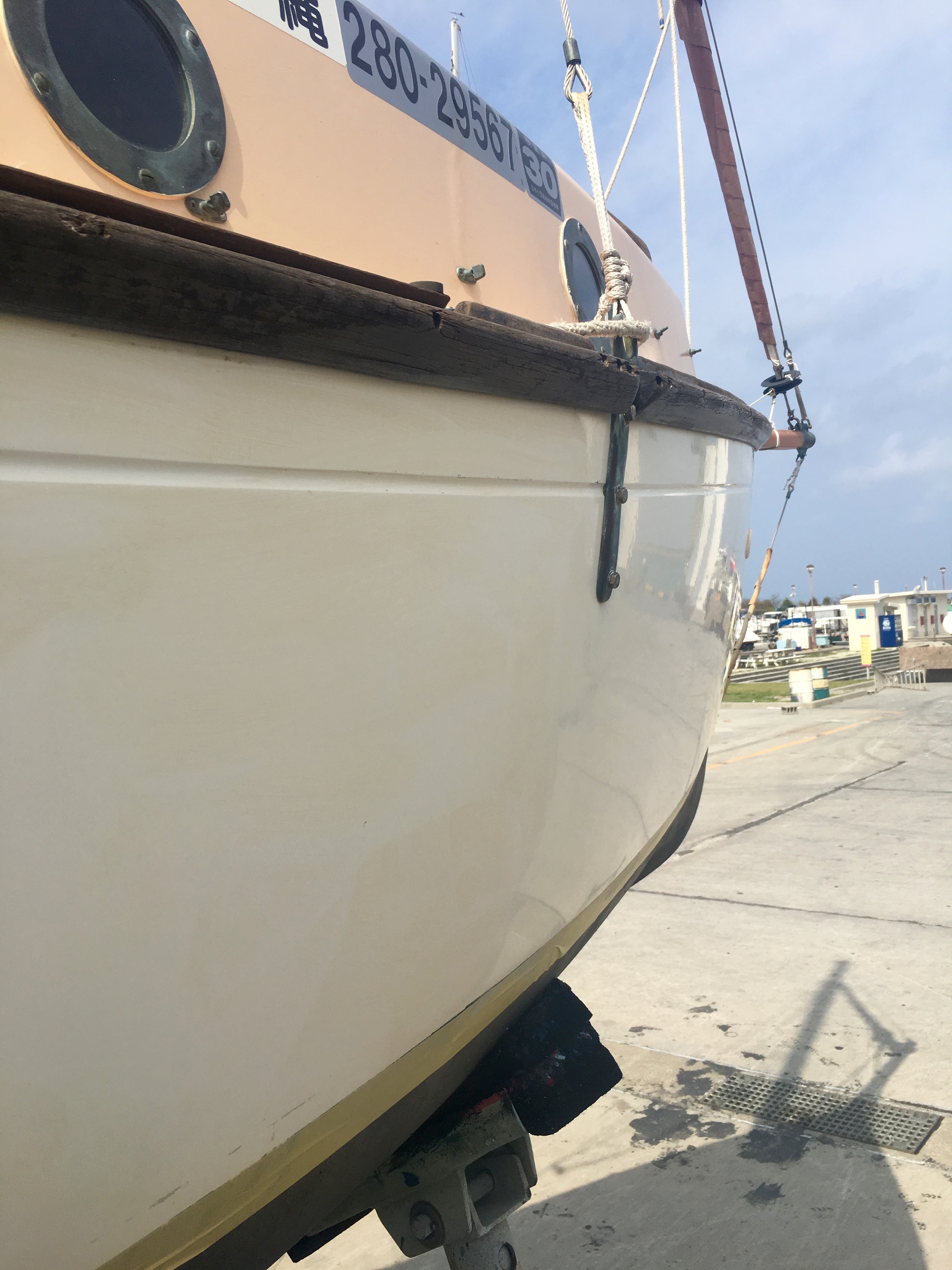 After three days of glorious work amongst friends in a Japanese boatyard, we drop her back in the water with a black bottom. Yay Norfolk Gypsy!