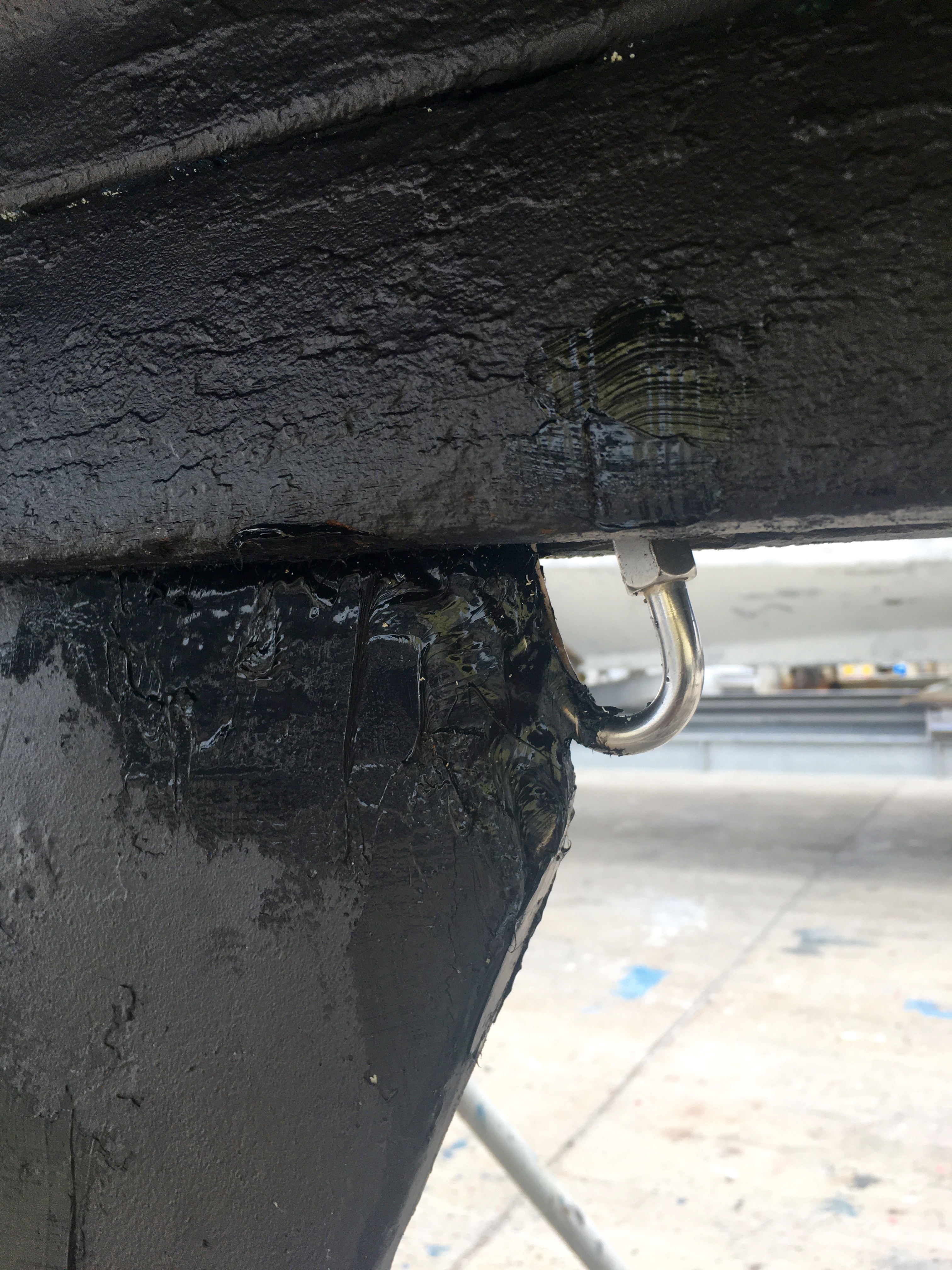 This is all very well but the main problem is the center plate. Kiyuna san slices off the end of the decayed plate and welds on a shackle.