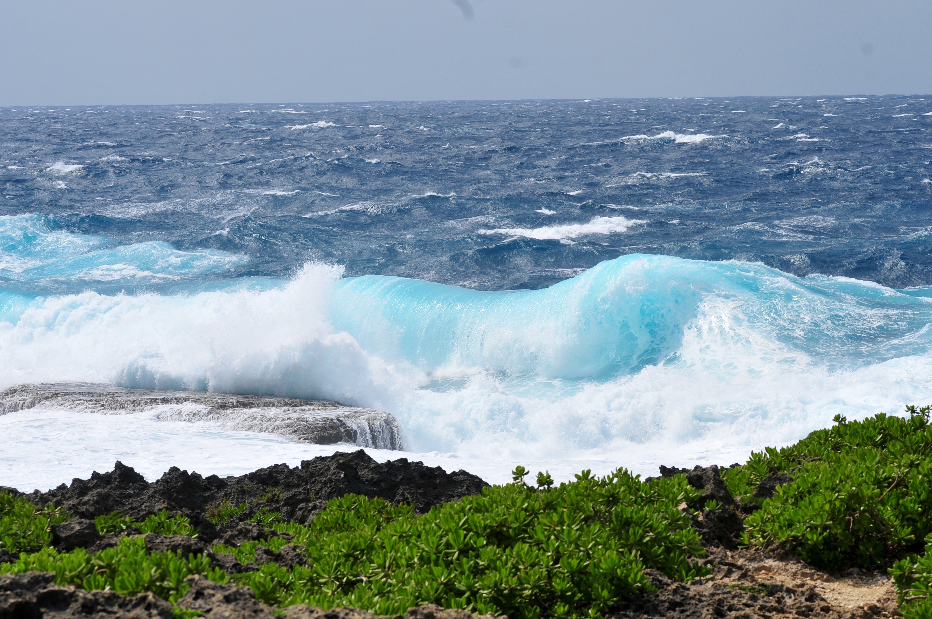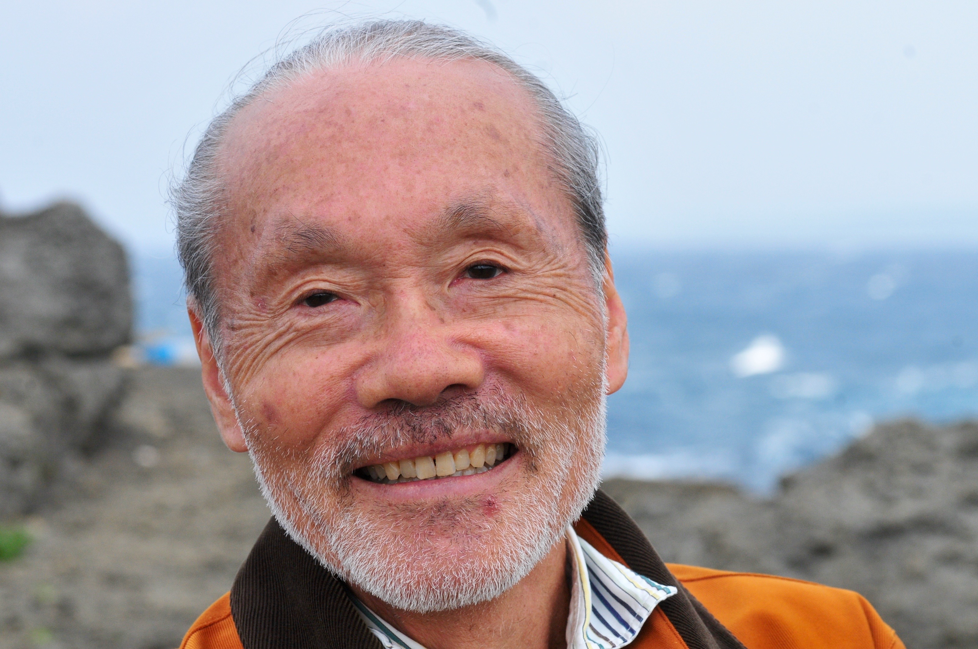 I am at Cape Zanpa, usually replete with tourists. Today, there is only one man wandering in the wind. Yay, it is an old friend.