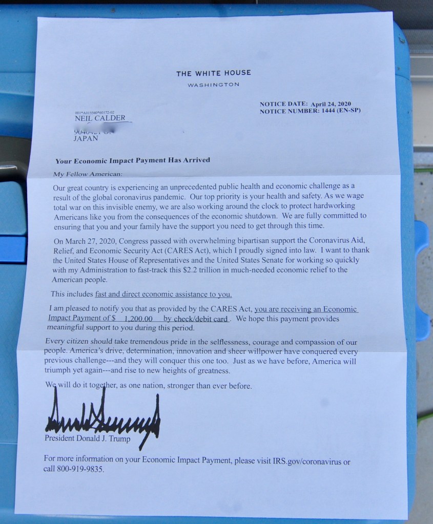 I get a personal letter from Donald Trump. He also sends me a cheque for $1200.