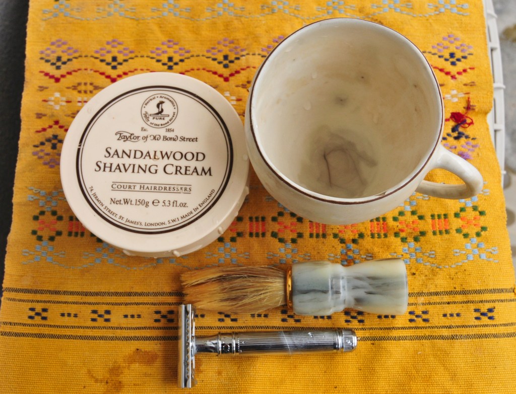 I remember as a very young boy having to carry my Father’s boiling hot shaving water in the designated shaving mug from the kitchen to the upstairs bathroom. I recall the dread of stumbling on the stairs and scalding water splashing over my legs. I wore shorts until I was 13.
