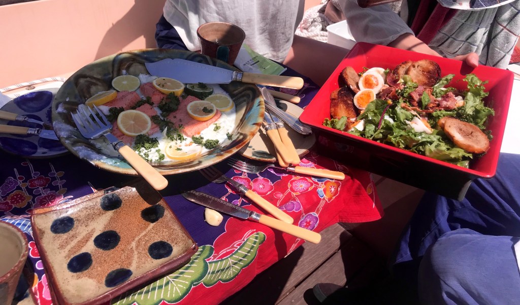 We then all go back to the boat for a fun lunch. Dockyard friends join us and we have a wonderful time.