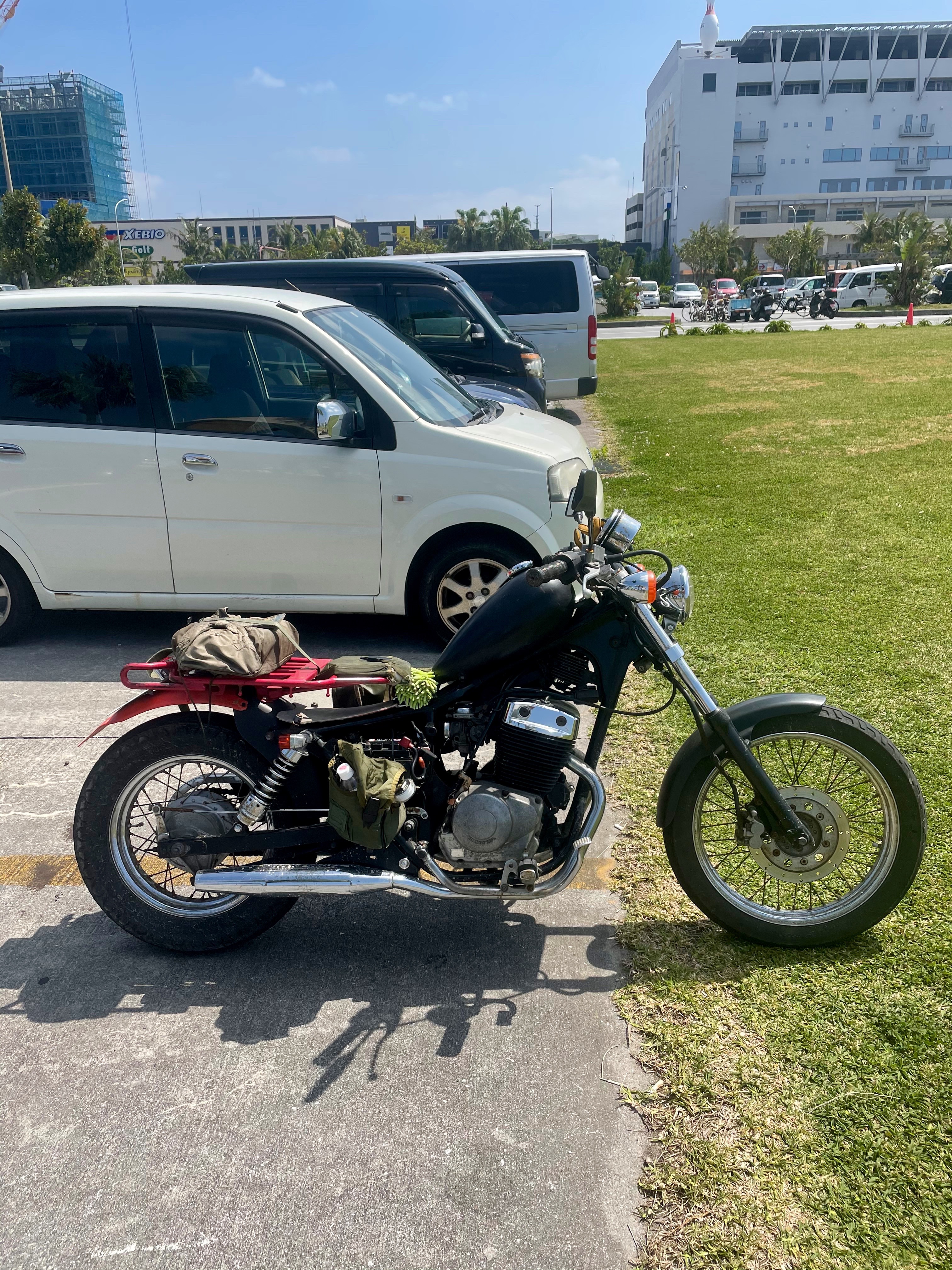The bike has no seat. It is made of bits from about 6 different bikes. Tomorrow Kiyuna san is going to install another new oil line and then I will hopefully be back in action.