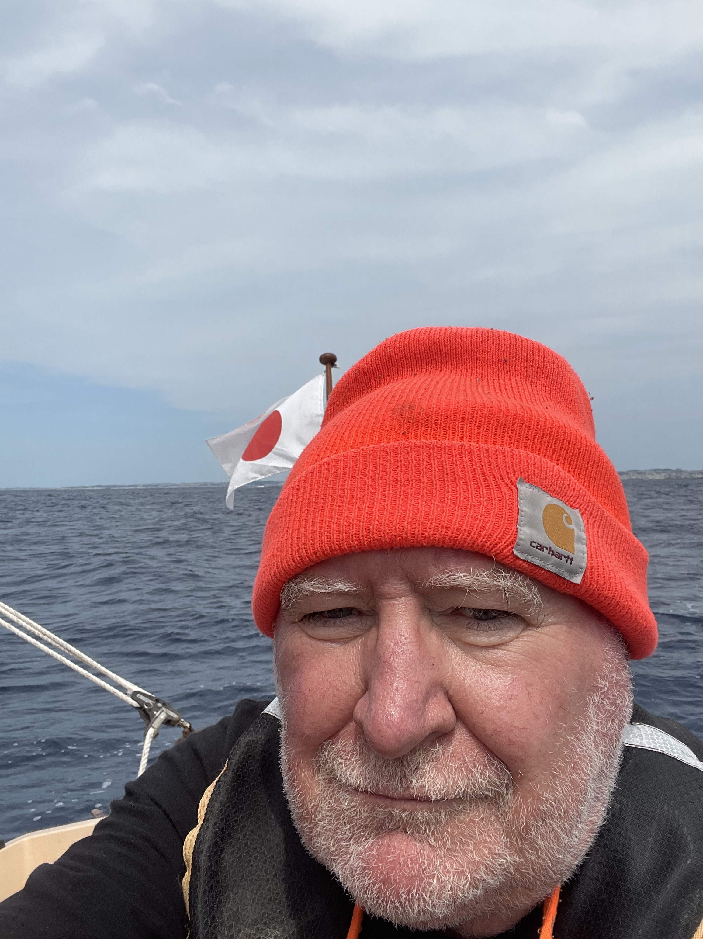 Naturally, when I get out to sea the wind is nowhere near as strong as I had anticipated. No worries, as she charges across well with the reef. It is a wonderful sail.