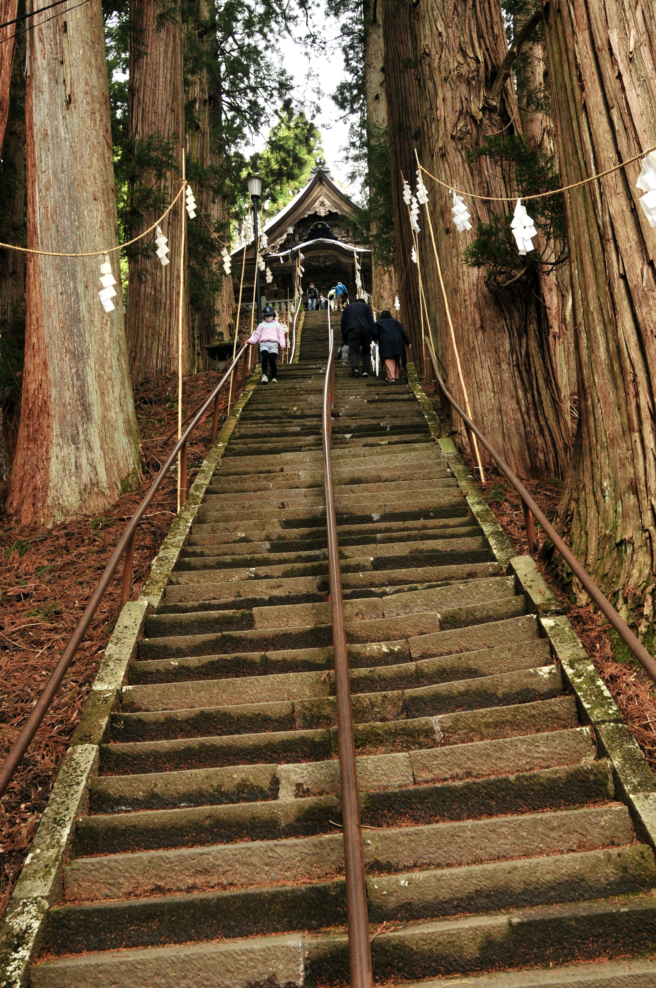 The third shrine in Togakushi is walking distance from our hotel, hotel does not do the establishment justice but we will come to that. It is a tough one. Steep steps that go on and on. It is worth it.
