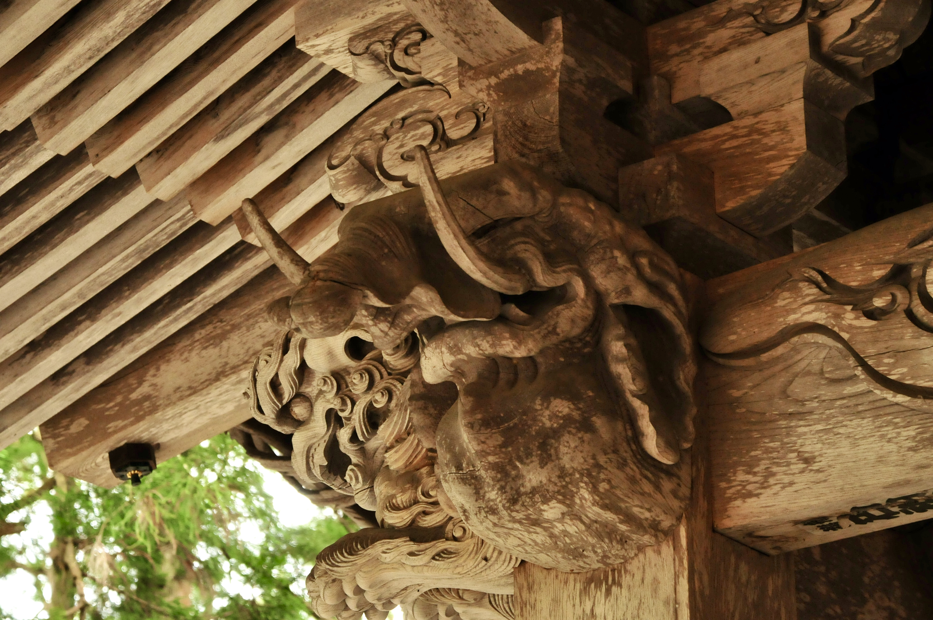 The shrine is beautiful. Decorated with carvings of animals and a very intricate, nail free charpente.