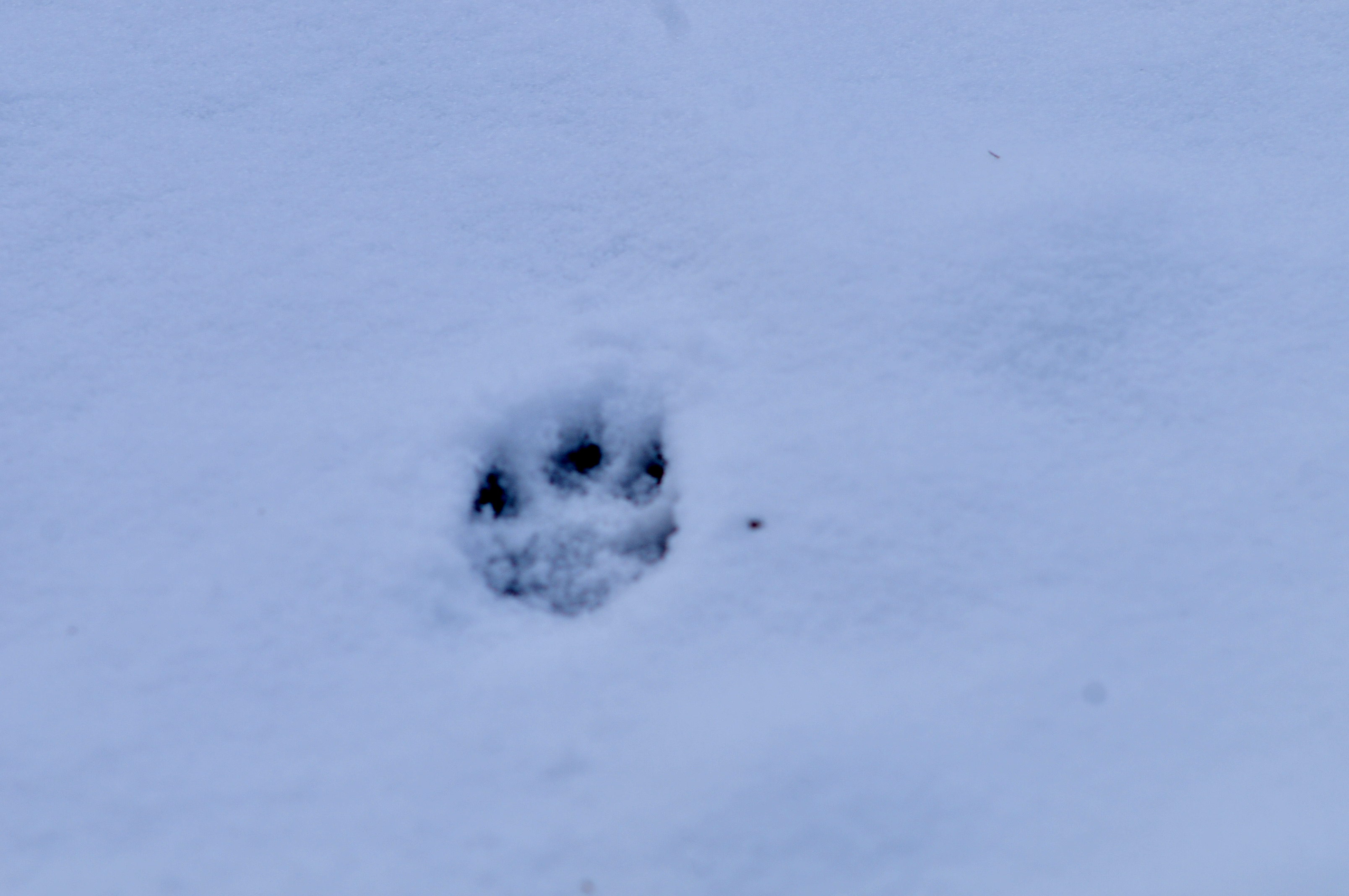 There are lots of animal tracks. We see Fox, Rabbit and, we think, Raccoon