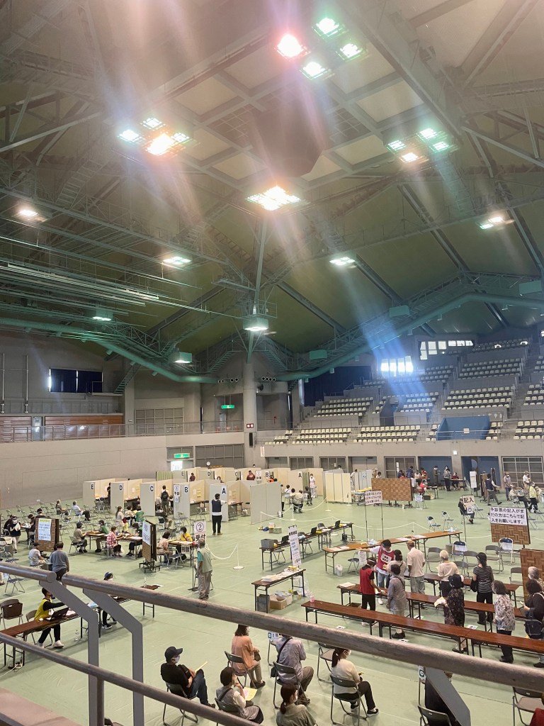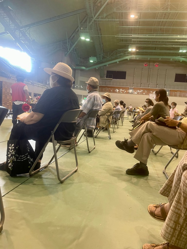I now sit on the other side of a table from a charming lady who interrogates me in Japanese. Again no worries, as the good shepherd produces an iPad that contains a young man in Tokyo who is an English interpreter! He interprets the lady’s questions and then does likewise with my answers. We have the best fun. Having minutely examined my current state of health and whether or not the Olympics should go ahead I am taken to the final area. Eventually my number is called and I am led into one of the vaccination booths. The smiling doctor asks me some more questions by way of the man in the iPad and then jabs me. It is very fast.