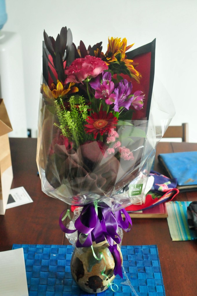 A bouquet of flowers arrived in the midst of my post tooth extraction gloom. It lifted me up!
