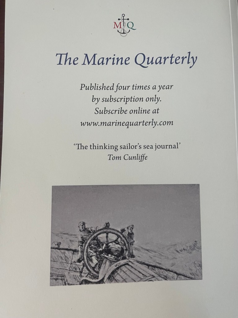 The Marine Quarterly is a very prestigious nautical journal emanating from the UK. It is by subscription only. There is a website but they do not post the articles. https://www.themarinequarterly.com/