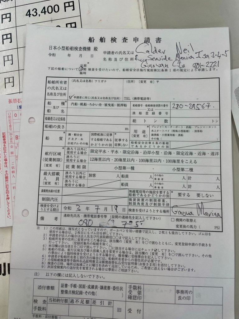 I go to the office in Tomari Harbor that deals with this and fill in many forms.