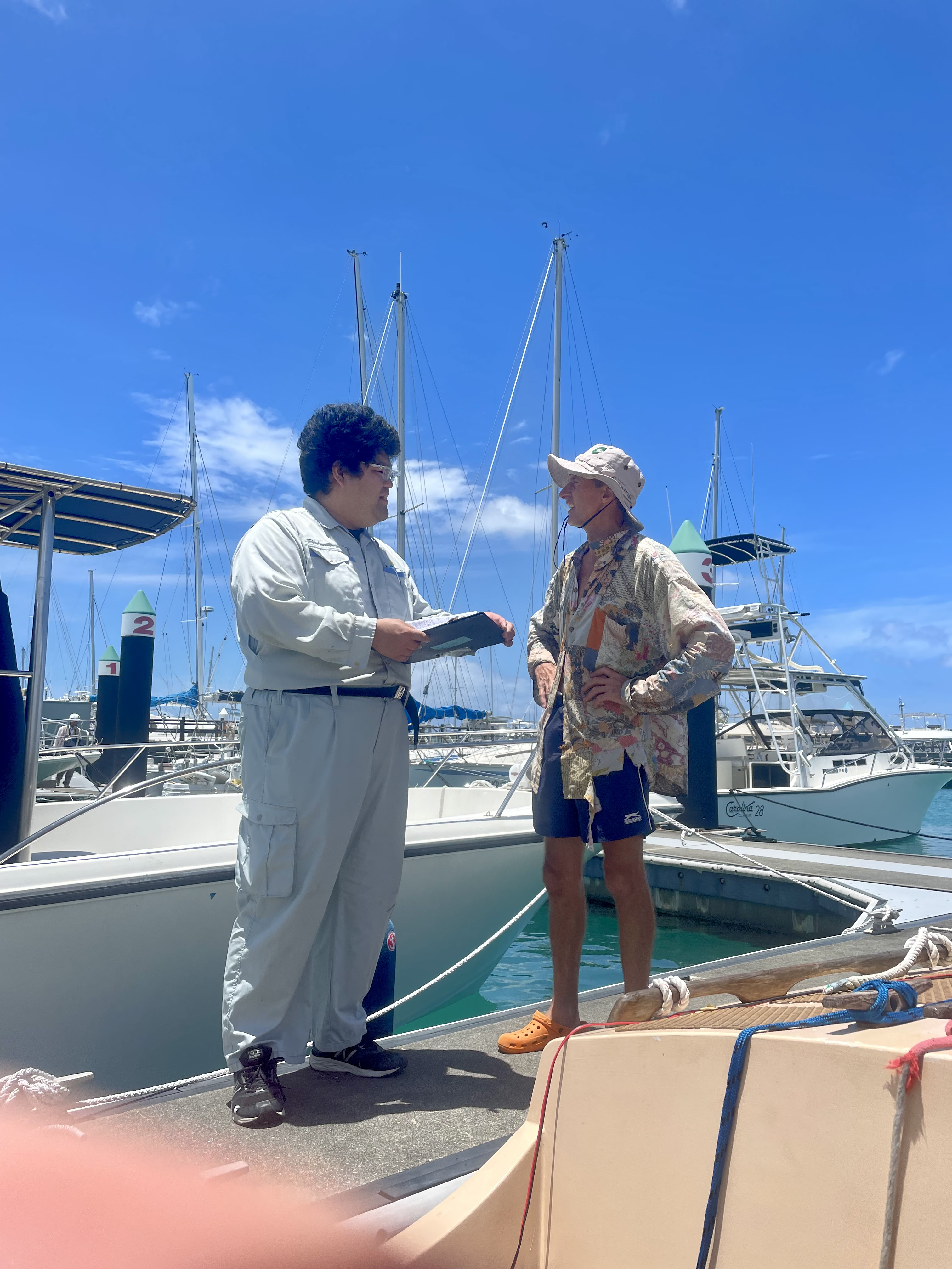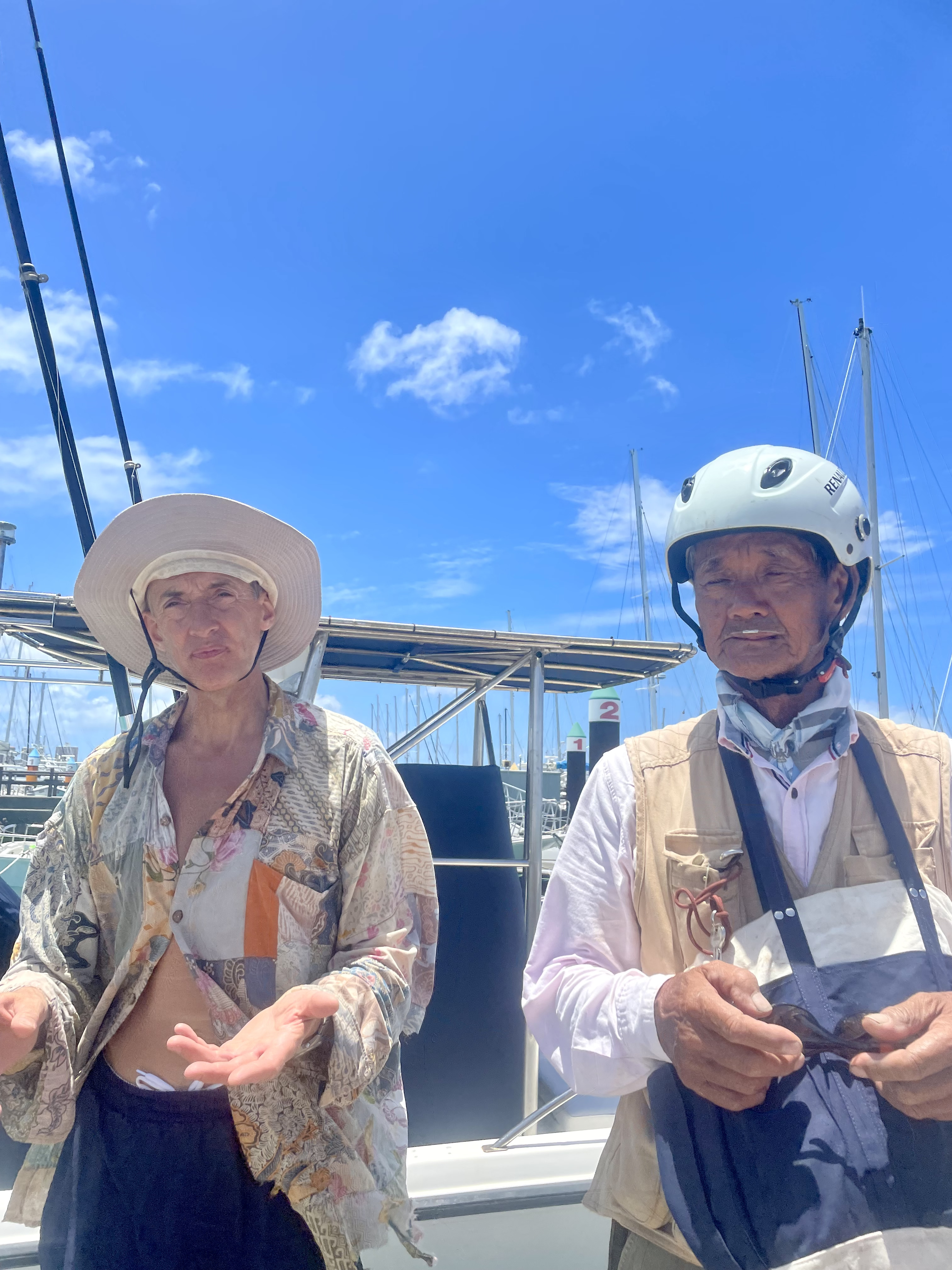 Luckily, Shingo san, who is the paint specialist at the marina, knows all the rules and tells me exactly what equipment I need to pass the inspection. He does not speak English. We mime.