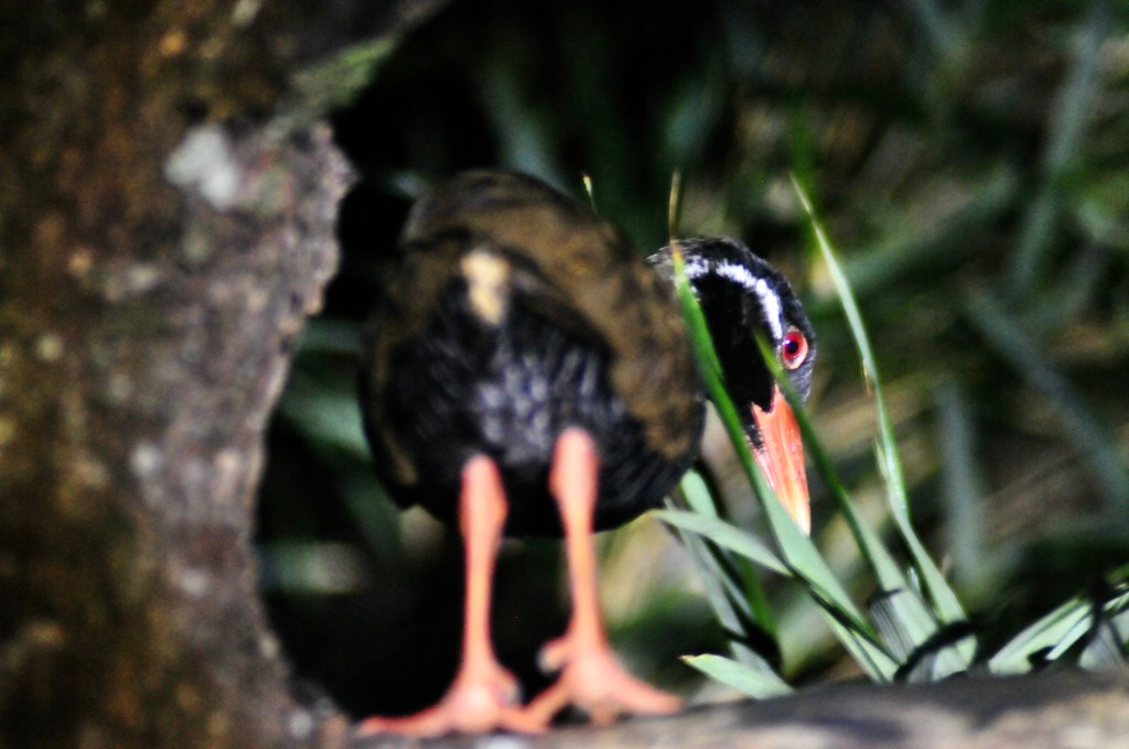 We are looking for Rails that have clambered up into trees to roost, they are flightless. Ichiro san finds three! These birds are so rare but he manages to find three in the pitch dark, late at night.
