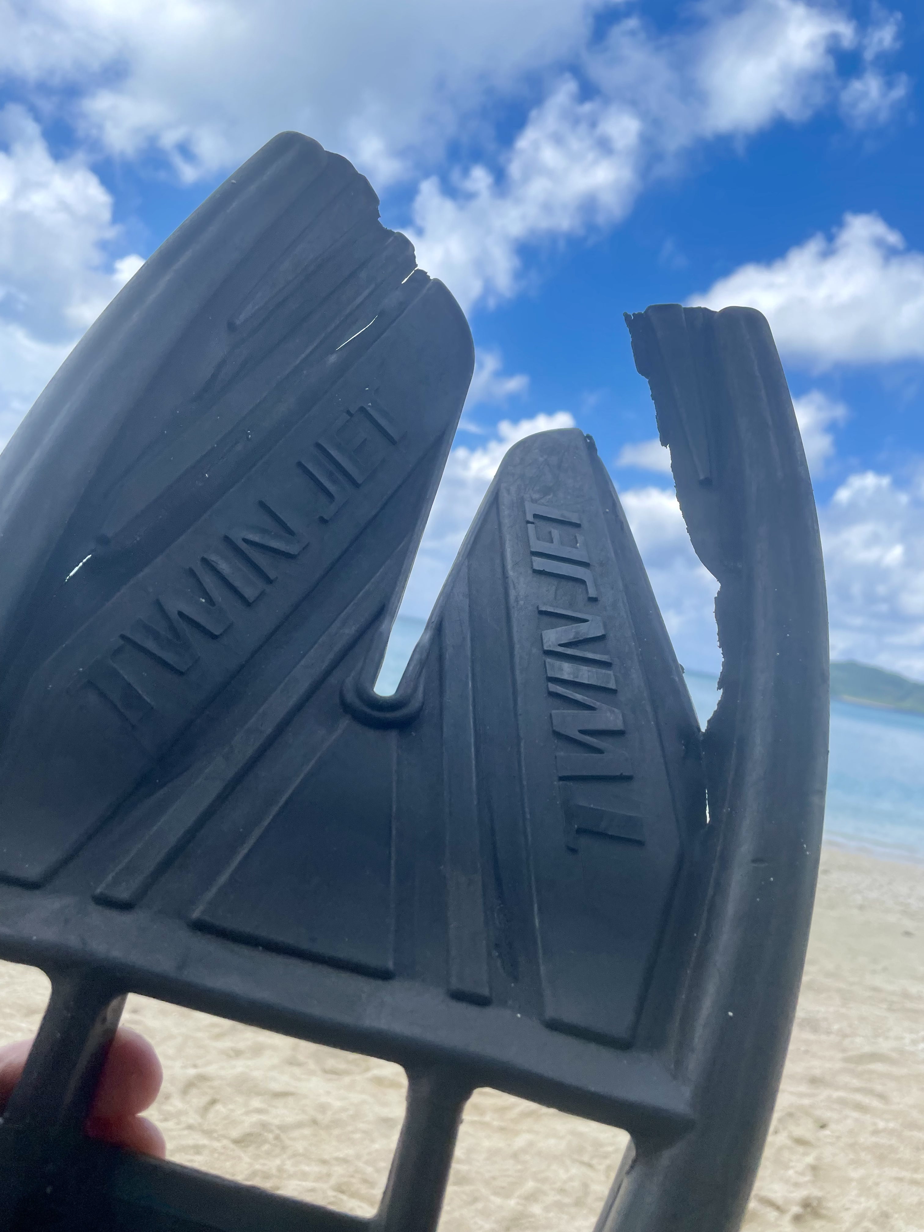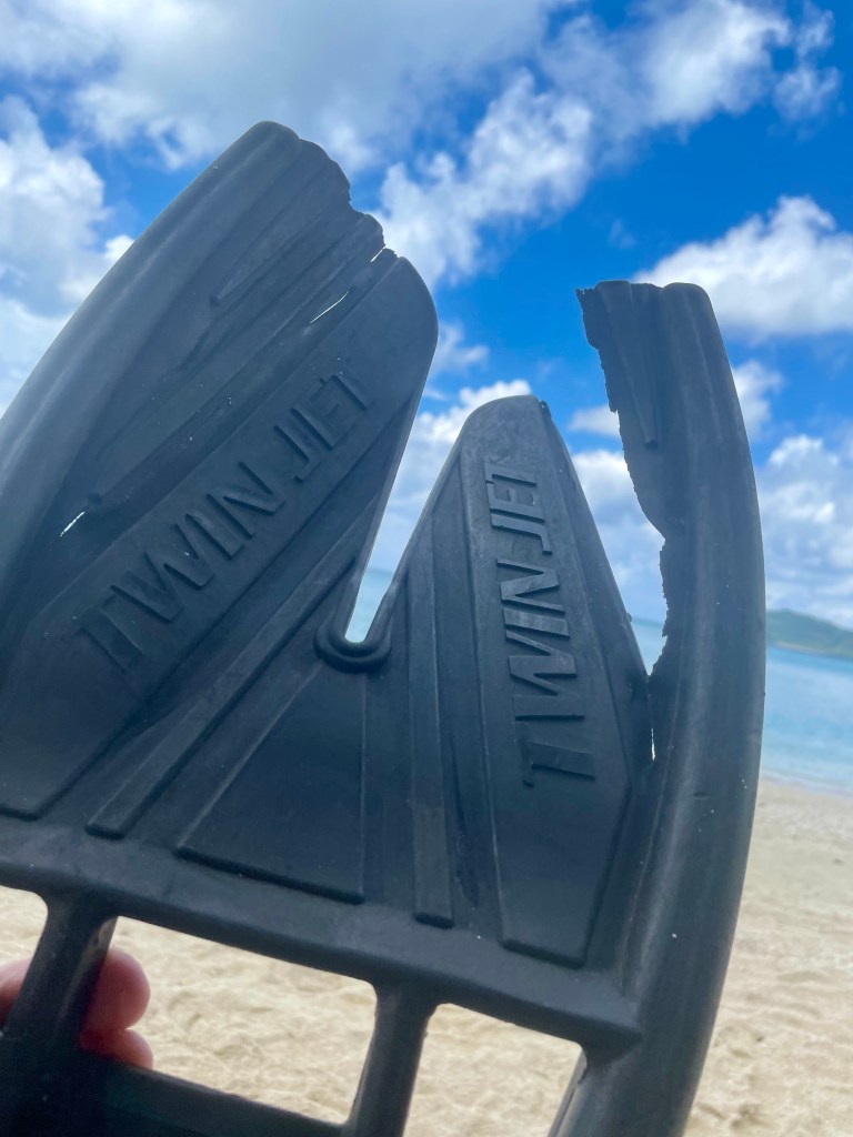 After a while I feel I should really go snorkeling. I take my fins from my bag and find they are broken.