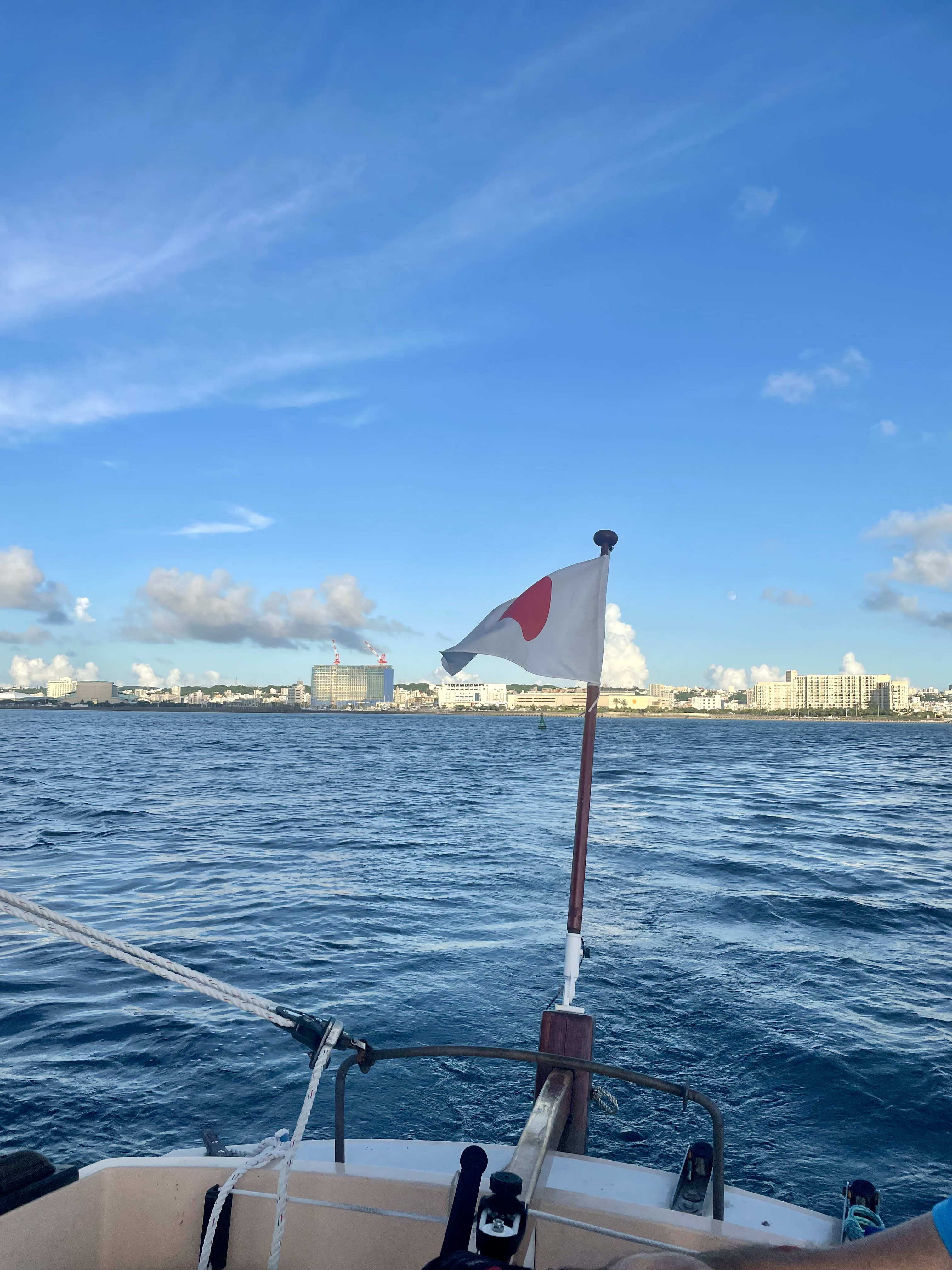 We can barely see as we come onto the the pontoon. Kiyuna san has seen us come in and is there to help with the mooring lines.