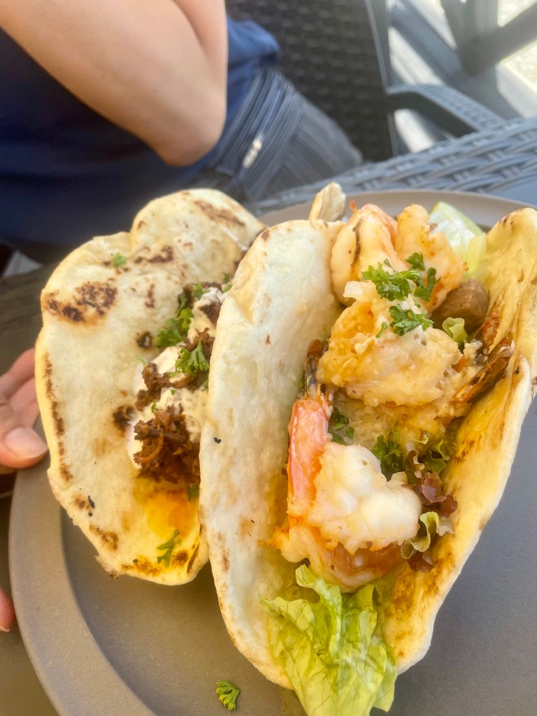 Yesterday, I had a great lunch, tacos Okinawa style.