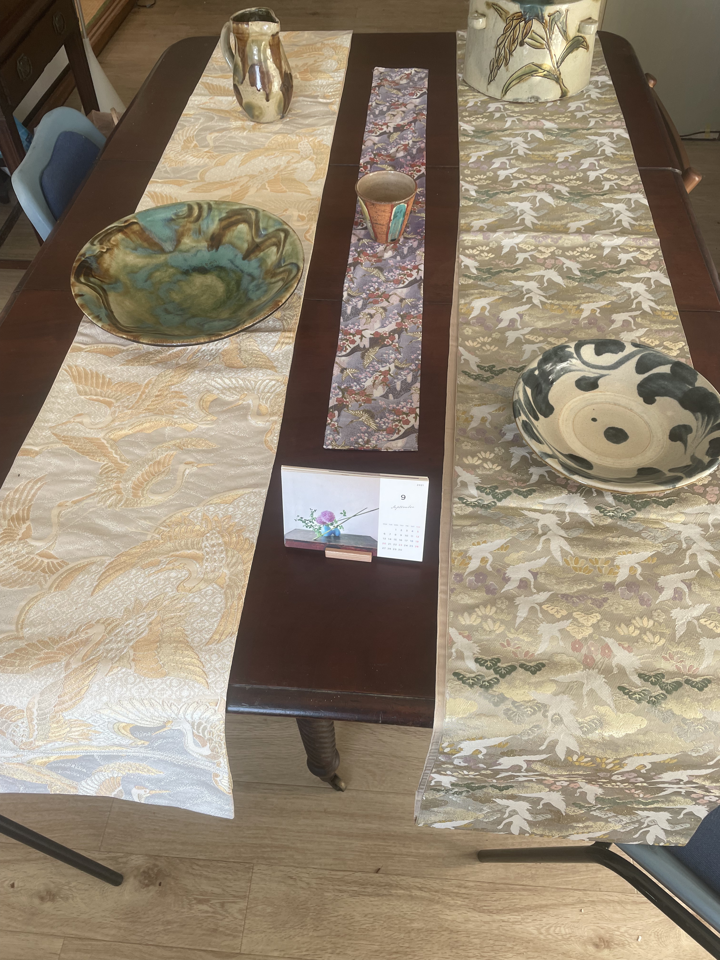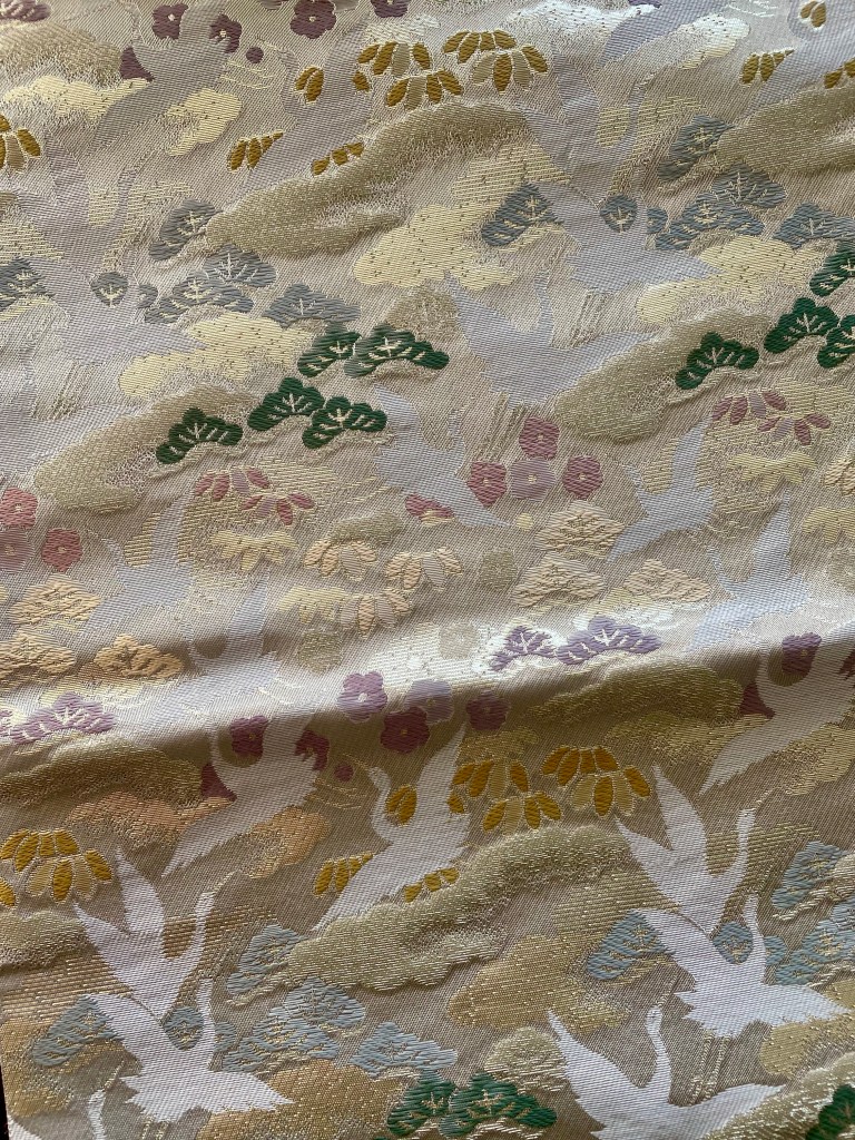 The only glitch is too little wind to sail meaningfully. I generally clean up the boat and chew the fat with Kiyuna san, who gives me another silk kimono belt, which I have learned are called Obi. Again this new Obi features Tsuru. It also has motifs of pine trees, bamboo flowers and cherry blossom. Pine trees and bamboo represent longevity, he explains, and sakura is, as you know, drenched in symbolism.
